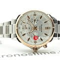 Белый циферблат с оригинальным узором дополнен гладким безелемБезельВнешний ободок, закрепляющий стекло. В спортивных часах так называется поворотное кольцо с делениями на циферблате, выполняет роль таймера – замеряет отрезки времени на шкале. Неподвижный безель – элемент декора. Однонаправленно вращающийся безель на дайверских часах позволяет фиксировать моменты погружения и выныривания на поверхность. цвета розового золота, такой оттенок был получен благодаря нанесению IP-покрытияIP-покрытиеМетод ионного напыления. Демонстрирует повышенную устойчивость к истиранию, окислению и химическим веществам. Под воздействием высокого давления и температуры около 1500°C молекулы металла надёжно соединяются с частицами корпуса часов.. В качестве декорирующих элементов были использованы оригинальные кристаллы Swarovski. Корпус и браслет выполнены из долговечной хирургической стали 316L. Минеральное стекло. Индикация даты и дня недели. Люминесцентная подсветкаЛюминесцентное покрытиеПозволяет считывать показания времени в темноте. Производители наносят на стрелки, часовые индексы, безель или поверхность циферблата светонакопительный состав, дающий холодное свечение.. Водозащита до 50 метров. Габариты: 41,4 x 45,3 x 11,2 мм.