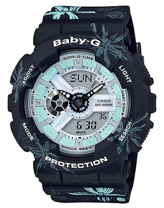 Противоударные японские спортивные женские часы Casio Baby-G BA-110CF-1A, кварцевый механизм с высокой точностью. Класс водозащиты: 100 метров, позволит плавать, нырять и заниматься другими водными видами спорта. Корпус часов изготовлен из пластика, цвета.