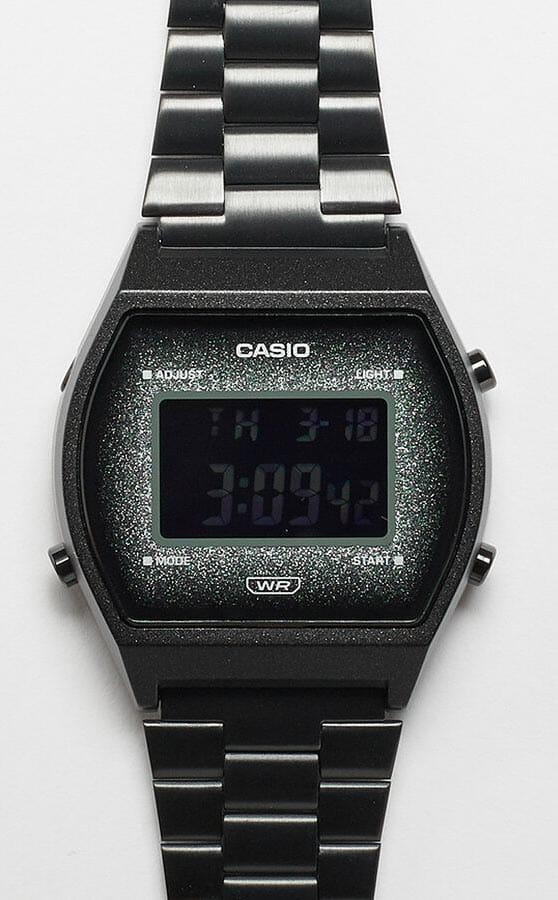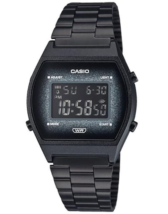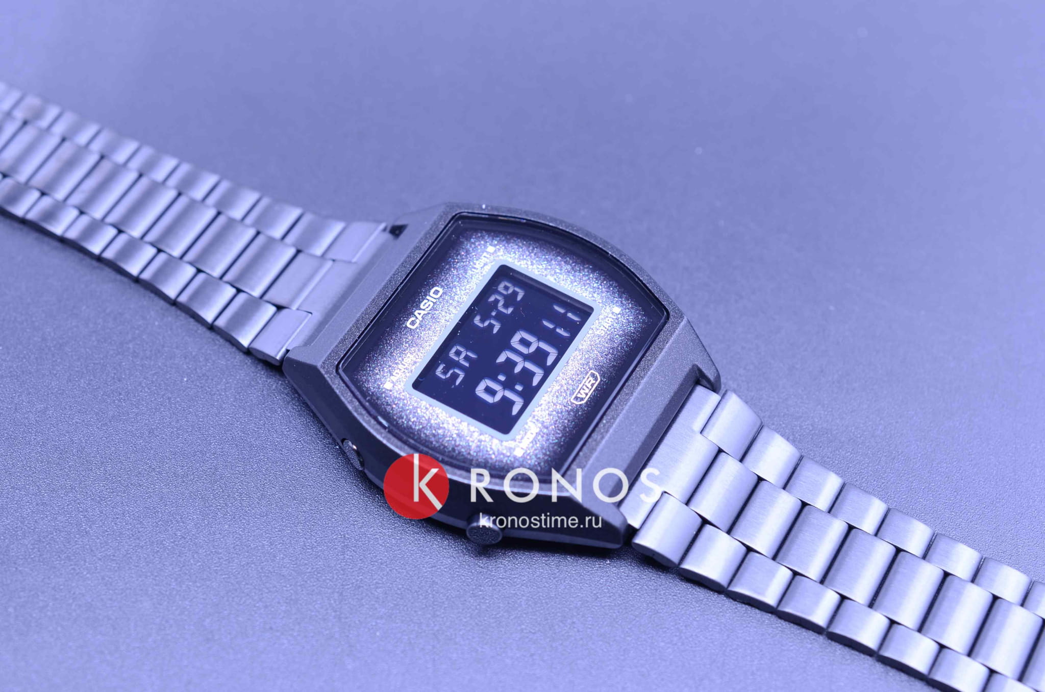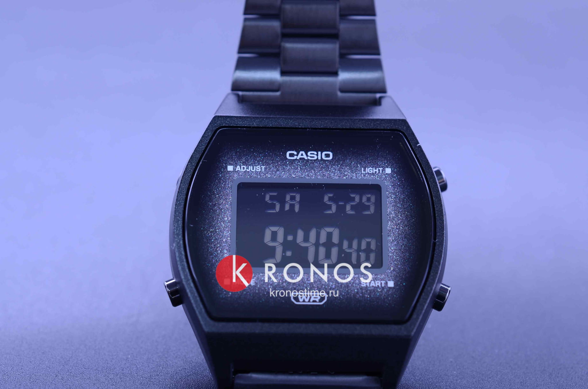 Первые модели от Casio выпускались в квадратном корпусе, который успешно реализован в аксессуаре B640WCG-5EF. Он стал не только стильным элементом часов, но и напоминанием о прошлых успехах бренда. Привлекательно смотрится цифровой дисплей с блестящей окантовкой, оттенок подобран в тон браслету. Он выполнен из нержавеющей стали 316L с IP-покрытиемIP-покрытиеМетод ионного напыления. Демонстрирует повышенную устойчивость к истиранию, окислению и химическим веществам. Под воздействием высокого давления и температуры около 1500°C молекулы металла надёжно соединяются с частицами корпуса часов., дополнительно защищающим от царапин. Яркая светодиодная подсветкаСветодиодная подсветкаСветодиодная или LED-подсветка обеспечивает появление яркого холодного свечения за счёт LED-элементов - маленьких лампочек. Они потребляют минимальное количество энергии, чаще всего можно встретить 1 светодиод, в нижней части циферблата. позволяет использовать часы в темноте, LED-индикатор мигает при окончании работы секундомера или таймера. Работ модели обеспечивает японский кварцевый механизм, батарейка которого рассчитана на 3 года службы. Циферблат защищён акриловым стеклом, устойчивым к повреждениям. Наручные ретро-часы имеют водостойкость 50 метров и без проблем выдержат мойку машины, душ, дождь. Удобна функция будильника, календаря. Габариты: 38,9 x 35 x 9,9 мм.