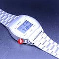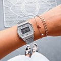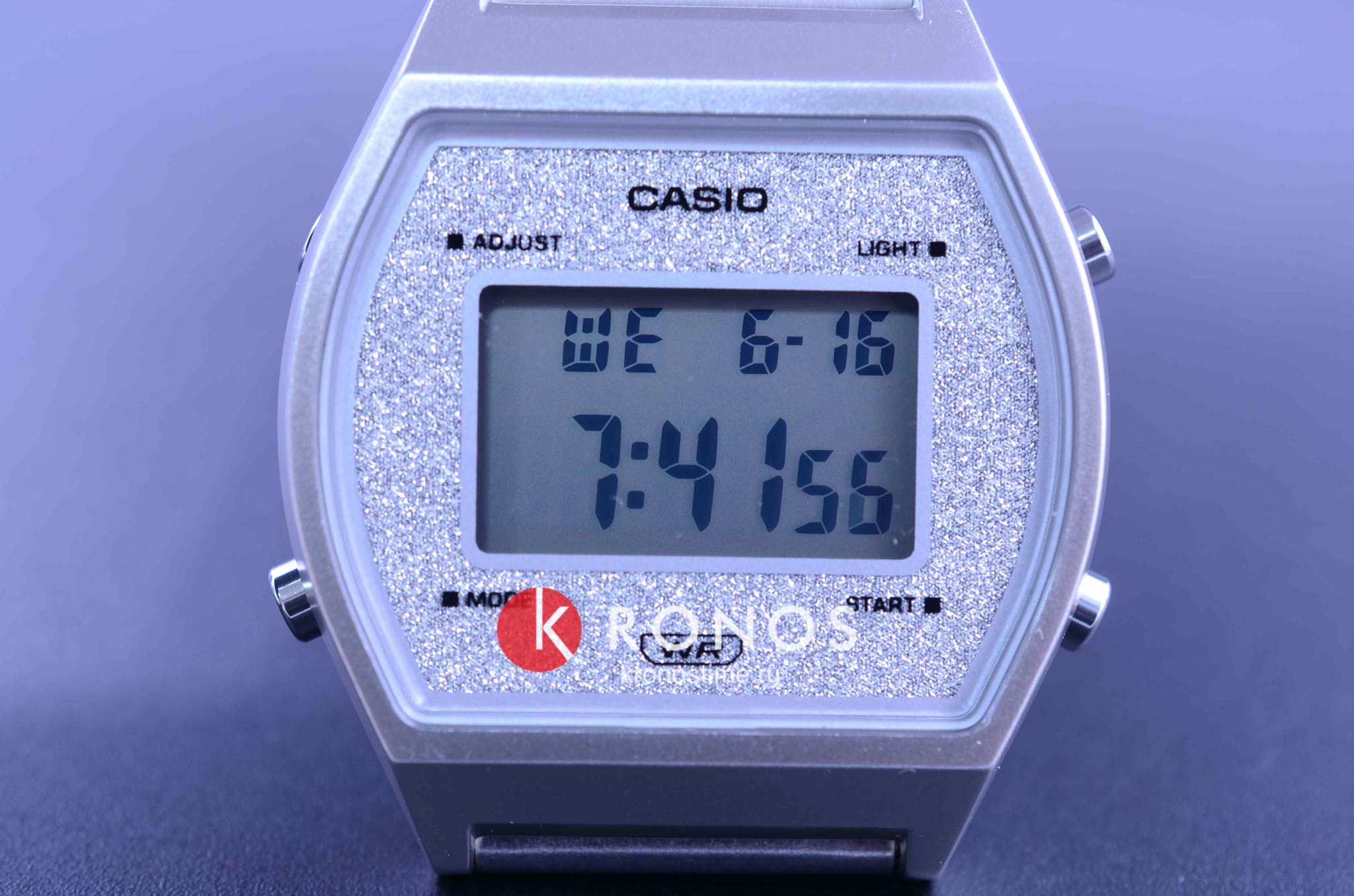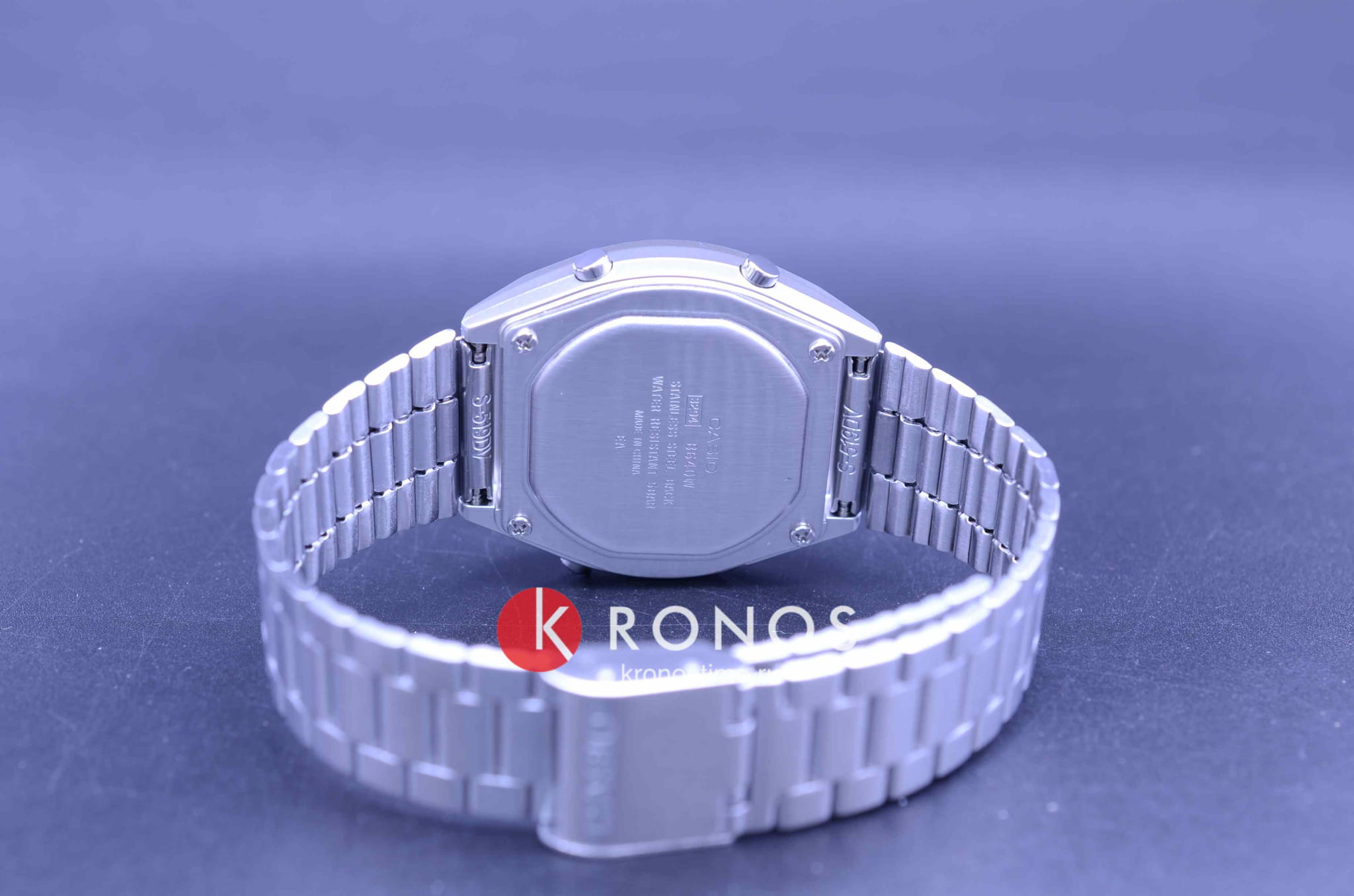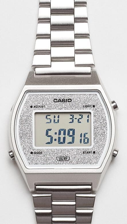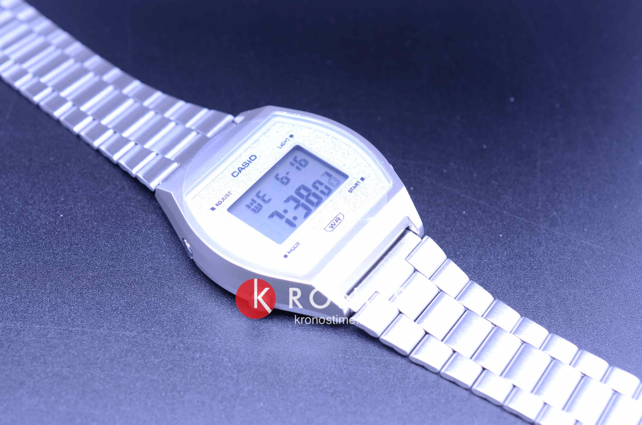 Первые модели от Casio выпускались в квадратном корпусе, который успешно реализован в аксессуаре B640WCG-5EF. Он стал не только стильным элементом часов, но и напоминанием о прошлых успехах бренда. Привлекательно смотрится цифровой дисплей с блестящей окантовкой, оттенок подобран в тон браслету. Он выполнен из нержавеющей стали. Яркая светодиодная подсветкаСветодиодная подсветкаСветодиодная или LED-подсветка обеспечивает появление яркого холодного свечения за счёт LED-элементов - маленьких лампочек. Они потребляют минимальное количество энергии, чаще всего можно встретить 1 светодиод, в нижней части циферблата. позволяет использовать часы в темноте, LED-индикатор мигает при окончании работы секундомераСекундомерСекундоме́р — прибор, способный измерять интервалы времени с точностью до долей секунды. или таймераТаймерОтсчитывает секунды в обратном направлении в заданном интервале времени.. Работ модели обеспечивает японский кварцевый механизм, батарейка которого рассчитана на 3 года службы. Циферблат защищён акриловым стеклом, устойчивым к повреждениям. Наручные ретро-часы имеют водостойкость 50 метров и без проблем выдержат мойку машины, душ, дождь. Удобна функция будильникБудильникБуди́льник — часы, в заданный момент времени подающие звуковой, световой и/или в редких случаях другой сигнал., календаря. Габариты: 38,9 x 35 x 9,9 мм.
