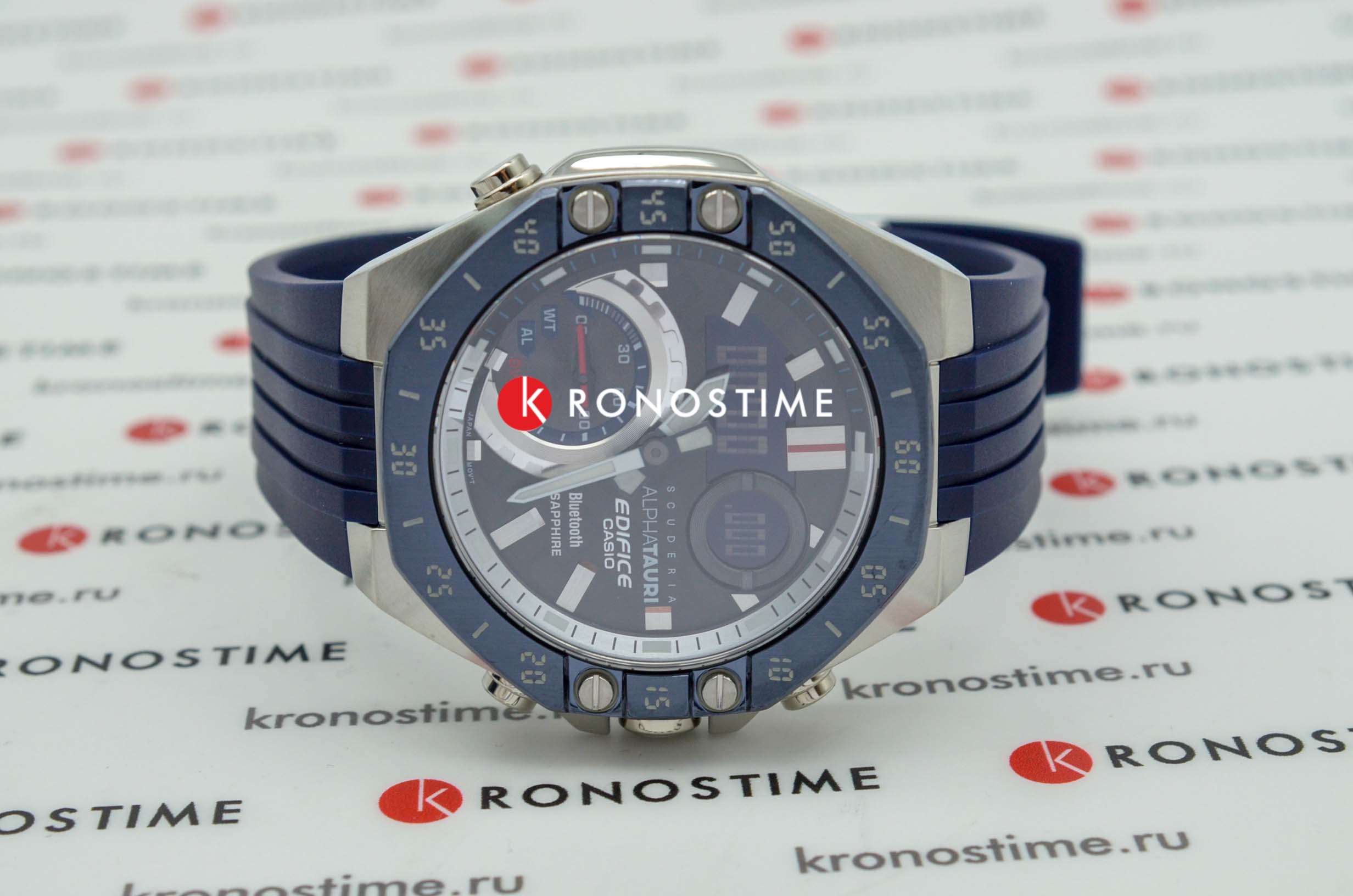 Casio Edifice ECB-10AT-1A – лимитированная модель, созданная в сотрудничестве с командой Формулы-1 Scuderia AlphaTauri. Корпус размером 48,5 мм и толщиной 12,5 мм выполнен из нержавеющей стали с IP-покрытиемIP-покрытиеМетод ионного напыления. Демонстрирует повышенную устойчивость к истиранию, окислению и химическим веществам. Под воздействием высокого давления и температуры около 1500°C молекулы металла надёжно соединяются с частицами корпуса часов. чёрного цвета, обеспечивающим прочность и устойчивость к коррозии. Циферблат выполнен из 6K карбона, что придаёт ему уникальный и технологичный вид, а его поверхность защищена сапфировым стекломСапфировое стеклоПрочный и надёжный материал из кристалла сапфира синтетического происхождения, характеризующийся особой твёрдостью и устойчивостью к царапинам и повреждениям. с антибликовым покрытиемАнтибликовое покрытиеСлой оксида металла в 0,13-0,3 микрон, благодаря которому стекло часов не бликует и не отражает свет. Антибликовое покрытие уменьшает отражение света в 10 раз, обеспечивая отличную читаемость показателей циферблата., устойчивым к царапинам.