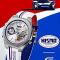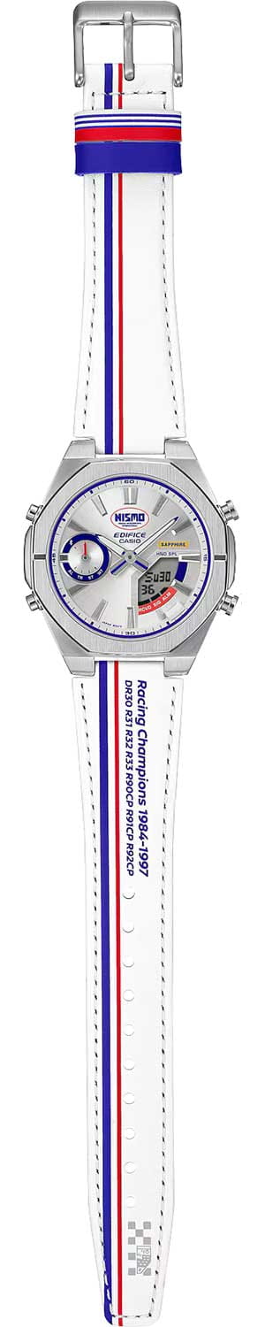 Японские мужские наручные часы Casio Edifice ECB-S10NIS-7A — это высокотехнологичный аксессуар для тех, кто ценит точность, стиль и современные инновации. Модель создана совместно с компанией Nismo, которая занимается автотюнингом и представляет интересы компании Nissan в автоспорте. Модель из коллекции Edifice, оснащённая технологией Bluetooth®, объединяет в себе классический дизайн и цифровые функции, делая каждое использование по-настоящему удобным. Корпус диаметром 43 мм выполнен из прочной нержавеющей стали , что придаёт модели благородства и долговечности. Циферблат серебристого цвета изготовлен по технологии Sunray (солнечные лучи), обеспечивая глубину и игру света. Защиту механизму обеспечивает сапфировое стеклоСапфировое стеклоПрочный и надёжный материал из кристалла сапфира синтетического происхождения, характеризующийся особой твёрдостью и устойчивостью к царапинам и повреждениям., устойчивое к царапинам и с антибликовым покрытием для лучшей читаемости. Часы работают на кварцевом механизме с поддержкой BluetoothBluetoothСовременная технология, позволяющая синхронизировать часы с телефоном и переносить данные. Часы с Bluetooth расширяют возможности вашего смартфона и делают его использование ещё более удобным.. Это даёт возможность автоматически корректировать время, устанавливать будильники, отслеживать дни недели на 6 языках , включая русский. Модель предлагает широкий набор функций: — Секундомер с точностью 1/100 секунды и временем измерения до 24 часов ; — SPLIT-хронографСплит-хронографИспользуется для измерения продолжительности нескольких временных отрезков, начинающихся одновременно, а заканчивающихся в разное время.; — ТаймерТаймерОтсчитывает секунды в обратном направлении в заданном интервале времени. обратного отсчёта от 1 секунды до 24 часов ; — 5 независимых будильников и ежечасный сигнал ; — отображение времени в формате 12/24 часа ; — автоматический календарь с возможностью отображения дня недели до 2099 года. Для комфортного использования в темное время стрелки покрыты люминесцентным составом. Часы также имеют светодиодную подсветкуСветодиодная подсветкаСветодиодная или LED-подсветка обеспечивает появление яркого холодного свечения за счёт LED-элементов - маленьких лампочек. Они потребляют минимальное количество энергии, чаще всего можно встретить 1 светодиод, в нижней части циферблата. циферблата, что делает их особенно удобными в условиях слабого освещения. Часы обладают водозащитой WR100 , подходят для повседневного ношения и плавания без акваланга. Толщина корпуса составляет всего 9.6 мм, благодаря чему часы легко помещаются под манжетом рубашки и не вызывают дискомфорта при носке. Завершает образ кожаный ремень со стандартной застежкой, обеспечивающий надежную фиксацию и комфортную посадку на запястье. Батарейка рассчитана на 2 года автономной работы , а вес модели составляет 69 грамм . Эта модель — идеальный выбор для тех, кто ценит современные технологии , классический стиль и точность японского качества . Casio Edifice — не просто хронограф, а полноценный спутник в деловой и повседневной жизни.