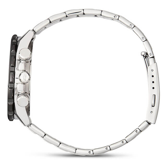 Это брендовый аксессуар для современного мужчины, привыкшего идти в ногу со временем. Сдержанная расцветка разбавлена ярко-жёлтыми деталями, позволяя акцентировать внимание на продуманном оформлении в автомобильной тематике. Привлекательно выглядит мягкий ремешок из полимерного материала. Японский кварцевый механизм с точностью хода +/- 20 секунд в месяц. Односторонне вращающийся безельБезельВнешний ободок, закрепляющий стекло. В спортивных часах так называется поворотное кольцо с делениями на циферблате, выполняет роль таймера – замеряет отрезки времени на шкале. Неподвижный безель – элемент декора. Однонаправленно вращающийся безель на дайверских часах позволяет фиксировать моменты погружения и выныривания на поверхность.. Противоударный корпусУдаропрочный корпусМеханизм заключён в корпус, выполненный из современных материалов, устойчивых к ударам, механическим повреждениям и падению с высоты: инновационный пластик, карбон, нержавеющая сталь, титан. и браслет из нержавеющей стали 316L. Чёрное IP-покрытиеIP-покрытиеМетод ионного напыления. Демонстрирует повышенную устойчивость к истиранию, окислению и химическим веществам. Под воздействием высокого давления и температуры около 1500°C молекулы металла надёжно соединяются с частицами корпуса часов.. Сапфировое стекло с антибликовой поверхностью. Завинчивающаяся задняя крышка. Водонепроницаемость 100 метров. Люминесцентная подсветкаЛюминесцентное покрытиеПозволяет считывать показания времени в темноте. Производители наносят на стрелки, часовые индексы, безель или поверхность циферблата светонакопительный состав, дающий холодное свечение.. Секундомер, хронографХронографФункция позволяет измерять отрезки времени с особой точностью: часы, минуты, секунды. Верным признаком хронографа является наличие на циферблате 3 дополнительных окошек-счётчиков., окошко даты. Габариты: 50 x 47 x 12 мм.