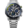 Корпус часов изготовлен из полированной нержавеющей стали. Класс водозащиты: 100 метров, позволит плавать, нырять и заниматься другими водными видами спорта. Сапфировое стекло с антибликовым покрытием. Питание от солнечной батареи. Индикатор уровня заряда батареи. Отображение даты.