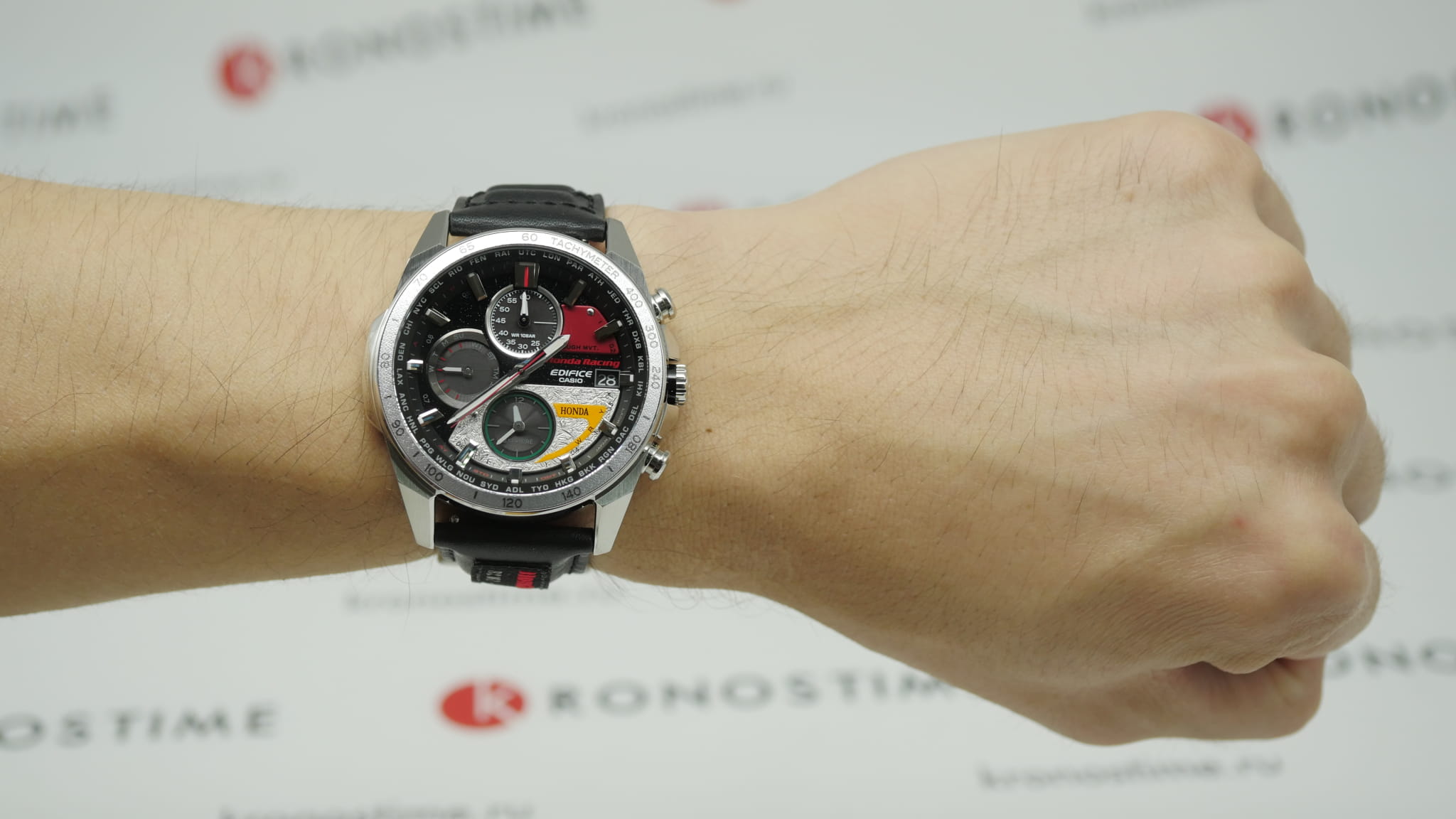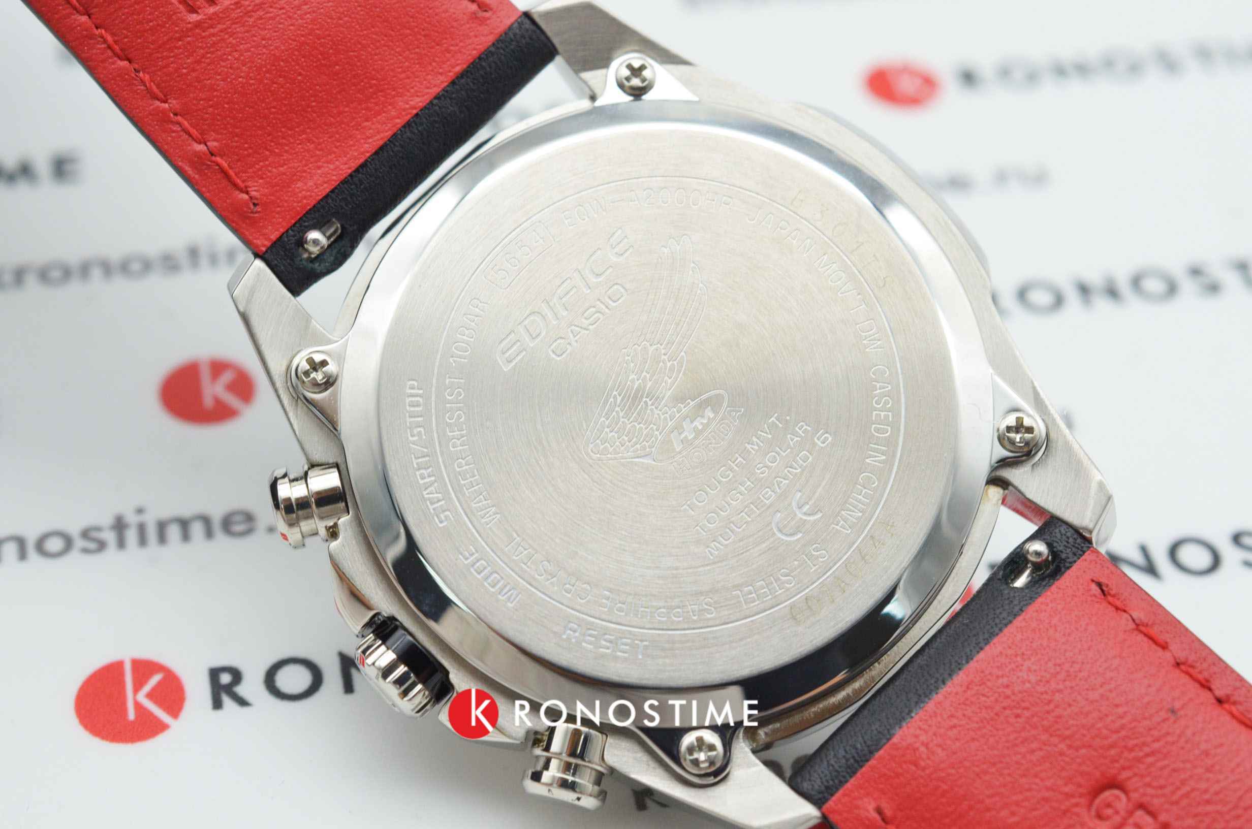 Стильный динамичный дизайн этих часов оценит по достоинству любой поклонник спортивного стиля. Edifice Honda Racing Limited Edition. Лимитированная серия. Часы созданы при сотрудничестве с компанией Honda Racing и посвящены 60-летию победы японского гонщика Kunimitsu Takahashi (Кунимицу Такахаси) в Гран-при Германии. Кунимицу стал первым японцем-победителем мотоциклетного Гран-при. Аббревиатура RC162 на ремешке означает модель байка, на котором гонщик выиграл 10 гонок Гран-при в течении года. Цветовая гамма часов выполнена в стиле байка Honda RC162. Питание от солнечной энергии Tough Solar - солнечные батарейки большой мощности, индикатор заряда батареи.