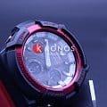 Брендовая модель в яркой чёрно-красной гамме на вашем запястье привлечёт всё внимание окружающих. Мы видим продуманное исполнение каждой детали, стильный дизайн, динамичный характер. Часы со стальным безелемБезельВнешний ободок, закрепляющий стекло. В спортивных часах так называется поворотное кольцо с делениями на циферблате, выполняет роль таймера – замеряет отрезки времени на шкале. Неподвижный безель – элемент декора. Однонаправленно вращающийся безель на дайверских часах позволяет фиксировать моменты погружения и выныривания на поверхность. обладают противоударным корпусомУдаропрочный корпусМеханизм заключён в корпус, выполненный из современных материалов, устойчивых к ударам, механическим повреждениям и падению с высоты: инновационный пластик, карбон, нержавеющая сталь, титан. из прочного пластика, материал поглощает силу удара и устойчив к вибрации. Кварцевый японский механизм получает питание от солнечного света - технология . Индикатор уровня заряда батареи. Частичное IP-покрытиеIP-покрытиеМетод ионного напыления. Демонстрирует повышенную устойчивость к истиранию, окислению и химическим веществам. Под воздействием высокого давления и температуры около 1500°C молекулы металла надёжно соединяются с частицами корпуса часов.. Минеральное стекло. Возможность перемещения стрелок для считывания информации с отдельных цифровых дисплеев. Автоматическая светодиодная подсветкаСветодиодная подсветкаСветодиодная или LED-подсветка обеспечивает появление яркого холодного свечения за счёт LED-элементов - маленьких лампочек. Они потребляют минимальное количество энергии, чаще всего можно встретить 1 светодиод, в нижней части циферблата., стрелки с покрытием NeobriteПодсветка NeobriteИспользование светонакопительных составов на основе сульфида цинка или алюмината стронция, яркий свет можно наблюдать на протяжении 6-10 часов после «зарядки» часов около источника света.. Надёжный полимерный ремешок. Таймер, хронографХронографФункция позволяет измерять отрезки времени с особой точностью: часы, минуты, секунды. Верным признаком хронографа является наличие на циферблате 3 дополнительных окошек-счётчиков., 5 будильников, мировое времяМировое время Полезное часовое усложнение, отображающее время в основных городах и известных областях по всему миру, оно связано с часовыми поясами, удобно для путешественников и бизнесменов. , корректировка времени по радиосигналу, секундомер. Габариты: 55,1 x 52,5 x 16,7 мм.