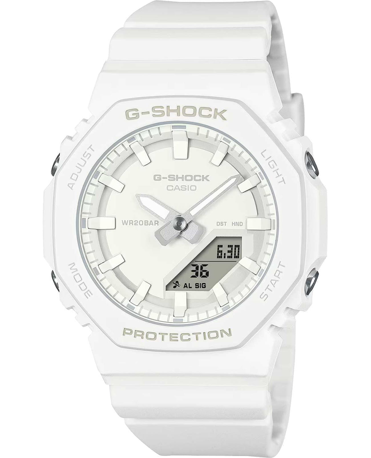 Женские кварцевые часы Casio G-Shock Casio G-Shock GMA-P2100-7A. Корпус часов изготовлен из пластика. Стрелки с люминесцентным покрытиемЛюминесцентное покрытиеПозволяет считывать показания времени в темноте. Производители наносят на стрелки, часовые индексы, безель или поверхность циферблата светонакопительный состав, дающий холодное свечение.. Водозащита: 200 метров, позволит плавать, нырять и заниматься другими водными видами спорта. Минеральное стеклоМинеральное стеклоМинеральное стекло представляет собой искусственно выращенный минерал кварца. Такое стекло отличается особой устойчивостью к повреждениям и царапинам. Уступает по некоторым качествам сапфировому стеклу. устойчивое к появлению царапин, обладающее высокой прозрачностью. Необритовое светонакопительное покрытие обеспечивает длительное послесвечение в темноте даже после кратковременного нахождения на свету. 12-ти и 24-х часовой формат времени. Секундомер с двумя точностями показаний: 1/100с (до 1ч) и 1с (после 1ч) и временем измерения 24ч. SPLIT-хронограф. Таймер обратного отсчета от 1с до 24ч. Мировое время – 48 городов (31 часовой пояс), всемирное координированное время (UTC). Пластиковый ремешок с классической застежкой.