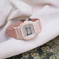 Японские женские часы-хронографХронографФункция позволяет измерять отрезки времени с особой точностью: часы, минуты, секунды. Верным признаком хронографа является наличие на циферблате 3 дополнительных окошек-счётчиков. Casio G-Shock GMD-S5600CT-4DR (GMD-S5600CT-4). Смелые и красивые, в потрясающем цвете. Минеральное стеклоМинеральное стеклоМинеральное стекло представляет собой искусственно выращенный минерал кварца. Такое стекло отличается особой устойчивостью к повреждениям и царапинам. Уступает по некоторым качествам сапфировому стеклу. устойчивое к появлению царапин, обладающее высокой прозрачностью. Ударопрочный корпусУдаропрочный корпусМеханизм заключён в корпус, выполненный из современных материалов, устойчивых к ударам, механическим повреждениям и падению с высоты: инновационный пластик, карбон, нержавеющая сталь, титан. защищает механизм от ударов и вибрации. Светодиодная подсветкаСветодиодная подсветкаСветодиодная или LED-подсветка обеспечивает появление яркого холодного свечения за счёт LED-элементов - маленьких лампочек. Они потребляют минимальное количество энергии, чаще всего можно встретить 1 светодиод, в нижней части циферблата. освещает весь циферблат, после отпускания кнопки свечение продолжается еще некоторое время. Настраиваемое послесвечение 1,5 или 3сек. СекундомерСекундомерСекундоме́р — прибор, способный измерять интервалы времени с точностью до долей секунды.. ТаймерТаймерОтсчитывает секунды в обратном направлении в заданном интервале времени.. 5 ежедневных будильников. Почасовой сигнал времени. Вечный календарьВечный календарьКлассическое часовое усложнение, представляющее собой календарь, рассчитанный на несколько лет вперёд (стандартно – до 2099 года). Определяет текущую дату, день недели, месяц.. Класс водозащиты: 200 метров, позволит плавать, нырять и заниматься другими водными видами спорта. Тканевый ремешок TrueCotton.