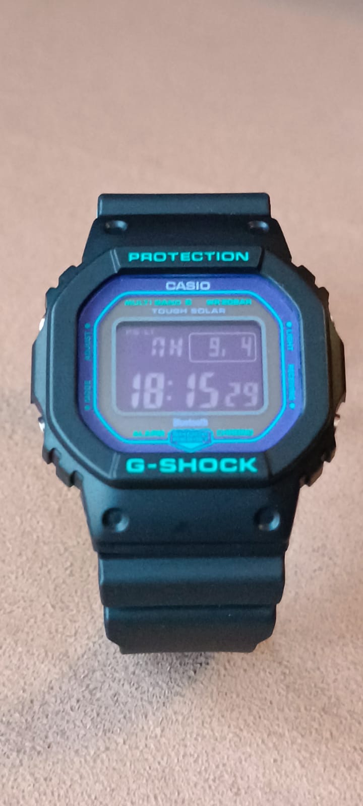 Модель сделана в цветовом оформлении духа 90-х, она имеет классический для часов Casio 8-угольный противоударный корпусУдаропрочный корпусМеханизм заключён в корпус, выполненный из современных материалов, устойчивых к ударам, механическим повреждениям и падению с высоты: инновационный пластик, карбон, нержавеющая сталь, титан., благодаря которому дизайн приобретает узнаваемые черты. Аксессуар выполнен из полимерного материала, устойчивого к ударам, повреждениям, вибрации, падению. Синхронизация времени и настройка функций осуществляется с помощью технологии BluetoothBluetoothСовременная технология, позволяющая синхронизировать часы с телефоном и переносить данные. Часы с Bluetooth расширяют возможности вашего смартфона и делают его использование ещё более удобным., управление возможностями происходит в приложении на телефоне G-Shock Connected. Японский кварцевый калибр. Питание от солнечного света . Автоматический переход в режим сохранения энергии для экономии расхода батареи. Минеральное стекло. Электролюминесцентная подсветкаЭлектролюминесцентная подсветкаЭлектролюминесцентная панель устанавливается под ЖК-экраном часов, при нажатии кнопки электричество преобразуется в свет за счёт подачи напряжения на атомы фосфора, такой тип подсветки позволяет освещать весь циферблат.. Водонепроницаемость до 200 метров. Секундомер, коррекция текущего времени радиосигналом, таймер, хронографХронографФункция позволяет измерять отрезки времени с особой точностью: часы, минуты, секунды. Верным признаком хронографа является наличие на циферблате 3 дополнительных окошек-счётчиков., будильник, мировое времяМировое время Полезное часовое усложнение, отображающее время в основных городах и известных областях по всему миру, оно связано с часовыми поясами, удобно для путешественников и бизнесменов. , календарь. Габариты: 48,9 x 42,8 x 13,4 мм.