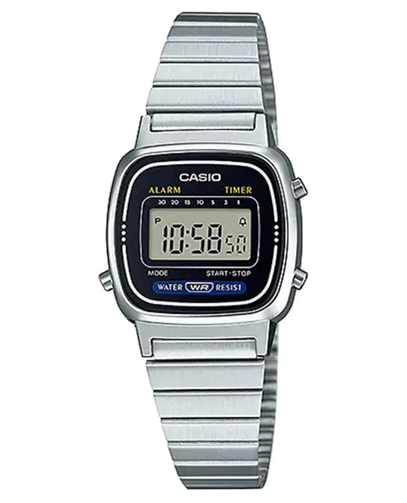 Модель LA670WA-1DF из коллекции Vintage сочетает в себе изысканный ретро-дизайн и практичность. Компактный корпус из полимерного материала с хромированным покрытием и браслет из нержавеющей стали с регулируемой застёжкойРаскладная застёжкаТакой тип застёжки используется только на браслетах из металла. Она никогда не раскрывается полностью, происходит разделение на 2 и более частей. Раскладывающая застёжка снизит вероятность потери часов к минимуму. обеспечивают удобство и долговечность.