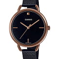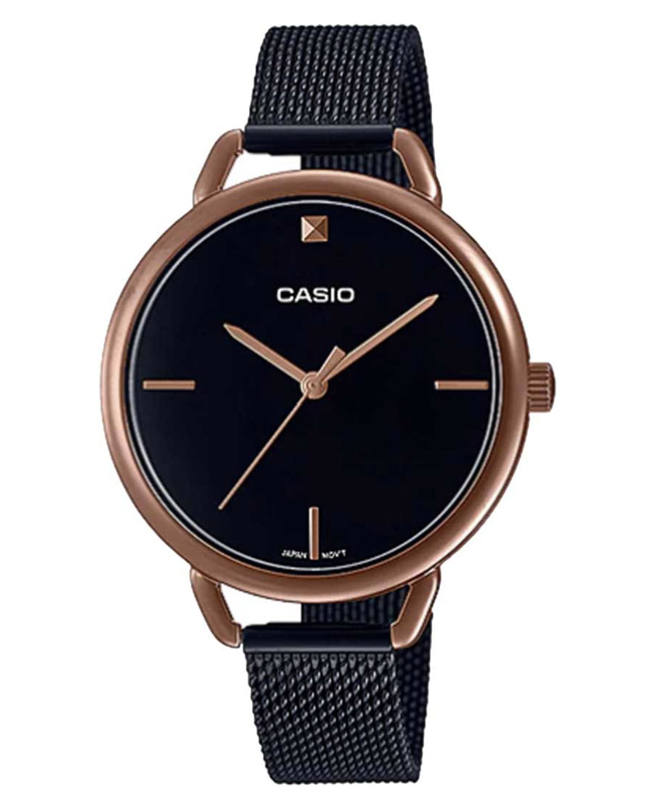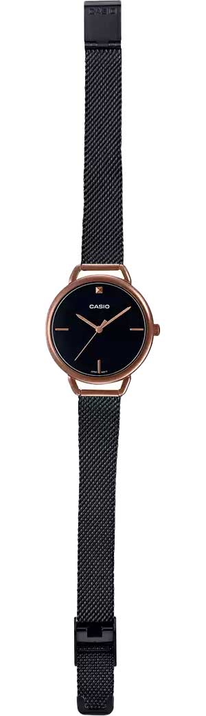 Японские женские часы Casio Collection LTP-E415MBR-1C из коллекции LTP с минеральным стекломМинеральное стеклоМинеральное стекло представляет собой искусственно выращенный минерал кварца. Такое стекло отличается особой устойчивостью к повреждениям и царапинам. Уступает по некоторым качествам сапфировому стеклу. изящно смотрятся на запястье, они привлекают классическим исполнением и правильной геометрией. Минималистичная модель станет отличным решением для любого случая: на работу, переговоры с деловыми партнёрами, прогулку с друзьями или праздничный вечер. Отсутствуют лишние детали, что позволяет часам быть актуальными на долгие годы. Корпус выполнен из нержавеющей стали с IP-покрытиемIP-покрытиеМетод ионного напыления. Демонстрирует повышенную устойчивость к истиранию, окислению и химическим веществам. Под воздействием высокого давления и температуры около 1500°C молекулы металла надёжно соединяются с частицами корпуса часов.. Браслет миланского плетения с раскладной застёжкойРаскладная застёжкаТакой тип застёжки используется только на браслетах из металла. Она никогда не раскрывается полностью, происходит разделение на 2 и более частей. Раскладывающая застёжка снизит вероятность потери часов к минимуму.. Модель комплектуется надёжным механизмом, точность хода которого составляет +/- 20 сек/мес.