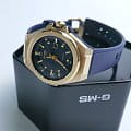 Модель сочетает несколько вариаций золотого: металлизированные стрелки, индексы, заводная головка. Такое исполнение поможет девушкам, ведущим активный образ жизни, не забывать о своей женственной натуре. Наручные часы реализуют технологию Tough SolarTough SolarТехнология основана на подзарядке аккумулятора от источника солнечного света, специальная панель улавливает солнечные лучи и преобразует их в энергию для работы часов. Достаточно пары минут нахождения на солнце для функционирования часов в течении суток., получая питание от солнца и искусственных источников света. При полностью зараженной батарейке японский кварцевый механизм способен проработать до 5 месяцев без подзарядки. Противоударный корпусУдаропрочный корпусМеханизм заключён в корпус, выполненный из современных материалов, устойчивых к ударам, механическим повреждениям и падению с высоты: инновационный пластик, карбон, нержавеющая сталь, титан. сделан из нержавеющей стали 316L, что позволяет не бояться последствий ударов, падения. Циферблат оснащён минеральным стеклом, оно отличается прочностью, устойчивостью к образованию царапин. Водостойкость до 10 бар. Стрелки покрыты светонакопительным люминесцентным составомЛюминесцентное покрытиеПозволяет считывать показания времени в темноте. Производители наносят на стрелки, часовые индексы, безель или поверхность циферблата светонакопительный состав, дающий холодное свечение.. На позиции 3 часов размещена апертура текущего числа. Габариты: 37,1 x 42,4 x 10,5 мм.