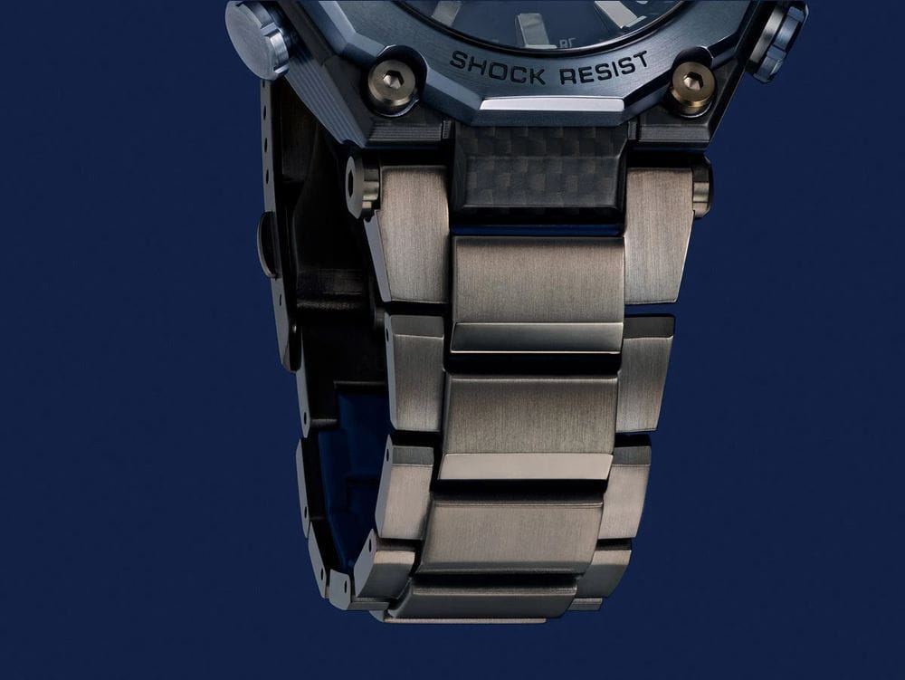 Модель Casio G-Shock MTG-B2000YBD-2A из премиальной серии MT-G сочетает в себе передовые технологии и элегантный дизайн. Корпус диаметром 55,1 мм выполнен из углеродного соединения с двойной защитной структурой Dual Core Guard, обеспечивая высокую прочность и лёгкость конструкции. Браслет представляет собой комбинацию нержавеющей стали и тонкого синего слоя смолы, обеспечивая комфорт при носке.