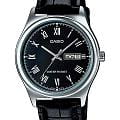 Мужские кварцевые часы Casio Collection — это классический аксессуар, созданный по строгим предписаниям формального дресс-кода. Корпус размером 38 мм и толщиной 9,4 мм выполнен из нержавеющей стали. Циферблат чёрного цвета оформлен штрихами, стрелками и двумя вынесенными окошками: для отображения дня недели и даты. Циферблат защищён минеральным стекломМинеральное стеклоМинеральное стекло представляет собой искусственно выращенный минерал кварца. Такое стекло отличается особой устойчивостью к повреждениям и царапинам. Уступает по некоторым качествам сапфировому стеклу.. Часы оснащены кожаным ремешком на классической пряжке. Водонепроницаемость 30 м позволяет использовать часы в повседневных условиях. Идеальный выбор для тех, кто ценит японское качество и универсальный дизайн.