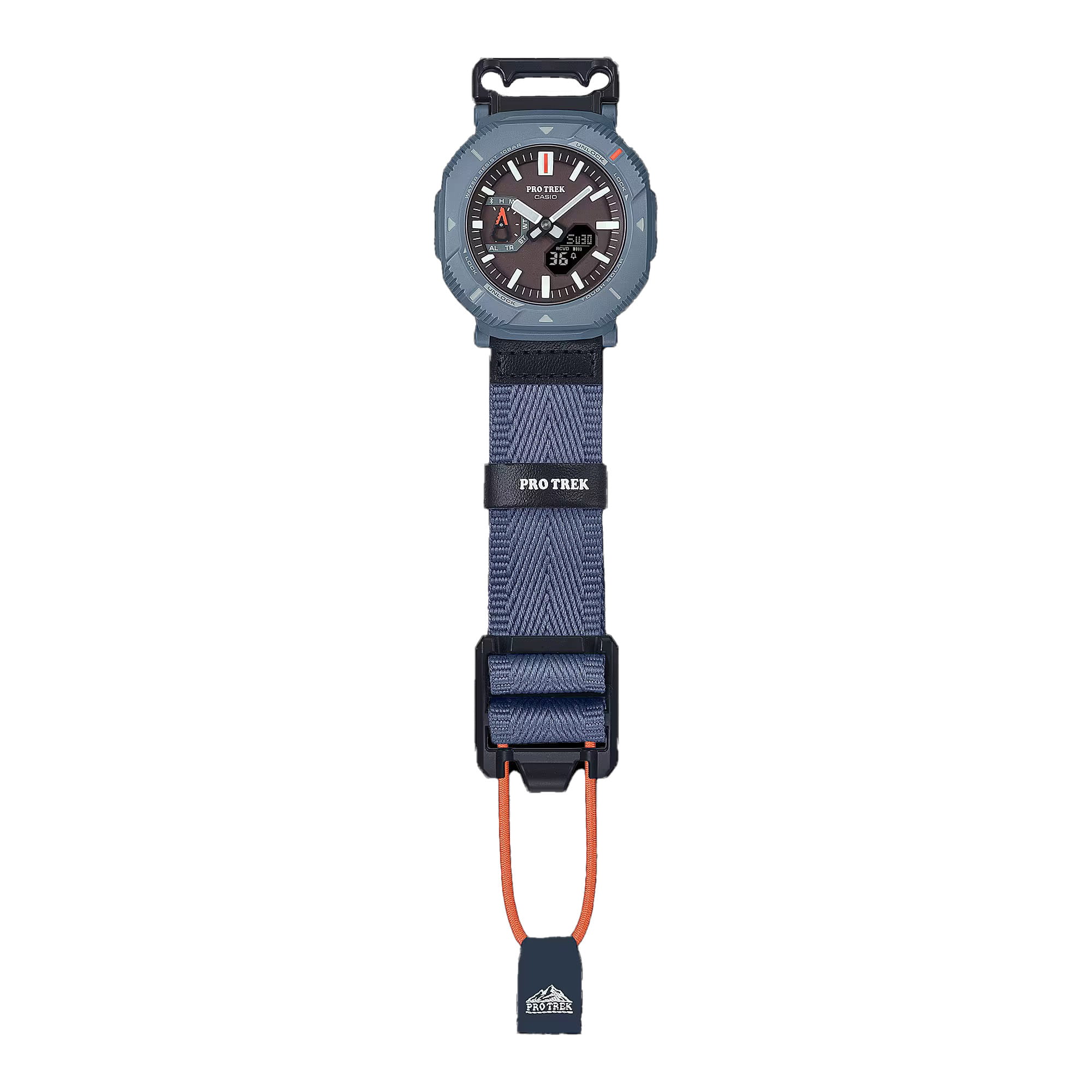 Японские мужские часы Casio Pro Trek PRJ-B001B-2DR (PRJ-B001B-2). Ударопрочный корпусУдаропрочный корпусМеханизм заключён в корпус, выполненный из современных материалов, устойчивых к ударам, механическим повреждениям и падению с высоты: инновационный пластик, карбон, нержавеющая сталь, титан. выполнен из полимера, такой материал отлично поглощает силу удара и вибрации. Питание от солнечной энергии , есть индикатор уровня заряда батарейки. Минеральное стеклоМинеральное стеклоМинеральное стекло представляет собой искусственно выращенный минерал кварца. Такое стекло отличается особой устойчивостью к повреждениям и царапинам. Уступает по некоторым качествам сапфировому стеклу.. Водозащита: 100 метров, позволит плавать, нырять и заниматься другими водными видами спорта. Функционал: барометр, высотомер с памятью данных, таймер, термометр, будильник, мировое времяМировое время Полезное часовое усложнение, отображающее время в основных городах и известных областях по всему миру, оно связано с часовыми поясами, удобно для путешественников и бизнесменов. , компас. Светодиодная подсветкаСветодиодная подсветкаСветодиодная или LED-подсветка обеспечивает появление яркого холодного свечения за счёт LED-элементов - маленьких лампочек. Они потребляют минимальное количество энергии, чаще всего можно встретить 1 светодиод, в нижней части циферблата. экрана, стрелки с люминесцентным покрытиемЛюминесцентное покрытиеПозволяет считывать показания времени в темноте. Производители наносят на стрелки, часовые индексы, безель или поверхность циферблата светонакопительный состав, дающий холодное свечение.. Габариты: 50,3 x 46 x 13,6 мм.
