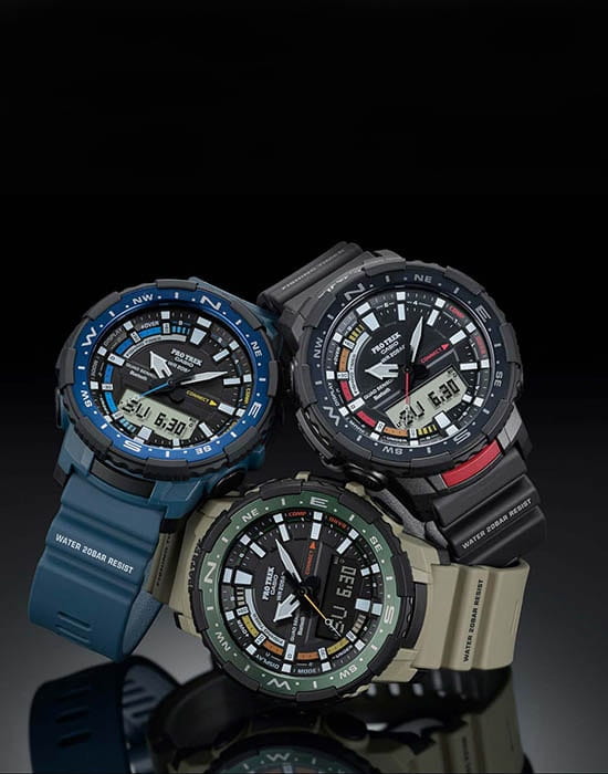 -навигация. Японский кварцевый механизм получает питание от батарейки, рассчитанной на 2-летний срок службы. Устойчивость к температуре ниже -10°C. Степень водостойкости WR 200. Ударопрочный корпусУдаропрочный корпусМеханизм заключён в корпус, выполненный из современных материалов, устойчивых к ударам, механическим повреждениям и падению с высоты: инновационный пластик, карбон, нержавеющая сталь, титан.. Минеральное стекло. Электролюминесцентная подсветкаЭлектролюминесцентная подсветкаЭлектролюминесцентная панель устанавливается под ЖК-экраном часов, при нажатии кнопки электричество преобразуется в свет за счёт подачи напряжения на атомы фосфора, такой тип подсветки позволяет освещать весь циферблат.. Полимерный ремешок с 3D-текстурой и системой быстрой замены браслета. Габариты: 57,5 x 50,8 x 16,8 мм.