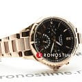 Тёмный циферблат с оригинальным узором идеально смотрится в сочетании с цветом розового золота, такой оттенок был получен благодаря нанесению IP-покрытияIP-покрытиеМетод ионного напыления. Демонстрирует повышенную устойчивость к истиранию, окислению и химическим веществам. Под воздействием высокого давления и температуры около 1500°C молекулы металла надёжно соединяются с частицами корпуса часов.. В качестве декорирующих элементов использованы оригинальные кристаллы Swarovski с роскошным сиянием. Корпус и браслет выполнены из долговечной хирургической стали 316L. Минеральное стекло. Индикация даты и дня недели. Люминесцентная подсветкаЛюминесцентное покрытиеПозволяет считывать показания времени в темноте. Производители наносят на стрелки, часовые индексы, безель или поверхность циферблата светонакопительный состав, дающий холодное свечение.. Водозащита до 50 метров. Габариты: 41,4 x 45,3 x 11,2 мм.
