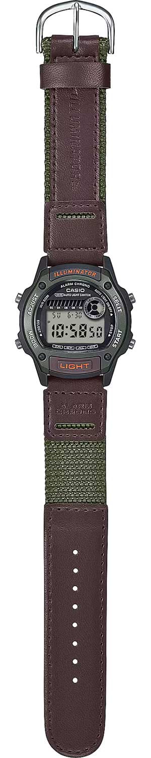 Спортивные японские мужские часы-хронографХронографФункция позволяет измерять отрезки времени с особой точностью: часы, минуты, секунды. Верным признаком хронографа является наличие на циферблате 3 дополнительных окошек-счётчиков. Casio Collection W-220HF-3A, кварцевый механизм с высокой точностью, органическое стекло. Изысканный корпус часов изготовлен из пластика. Светодиодная подсветкаСветодиодная подсветкаСветодиодная или LED-подсветка обеспечивает появление яркого холодного свечения за счёт LED-элементов - маленьких лампочек. Они потребляют минимальное количество энергии, чаще всего можно встретить 1 светодиод, в нижней части циферблата. освещает весь циферблат. Цвет подсветки: оранжевый. 12-ти и 24-х часовой формат времени. СекундомерСекундомерСекундоме́р — прибор, способный измерять интервалы времени с точностью до долей секунды. с точностью показаний 1/100с и временем измерения 24 ч. Сплит-хронографСплит-хронографИспользуется для измерения продолжительности нескольких временных отрезков, начинающихся одновременно, а заканчивающихся в разное время.. Функция второго часового поясаВторой часовой поясФункция, позволяющая отображать время двух часовых поясов одновременно., а также таймераТаймерОтсчитывает секунды в обратном направлении в заданном интервале времени., что делает часы функциональными. Батарейка рассчитана на 3 года. Класс водозащиты: 50 метров, позволит защитить корпус от случайных брызг или капель дождя. Ремешок тканевый с кожаными вставками, который изготавливается из возобновляемых органических ресурсов. Модель подчёркивает индивидуальность владельца и идеально подходит для повседневного образа. Лимитированная серия.