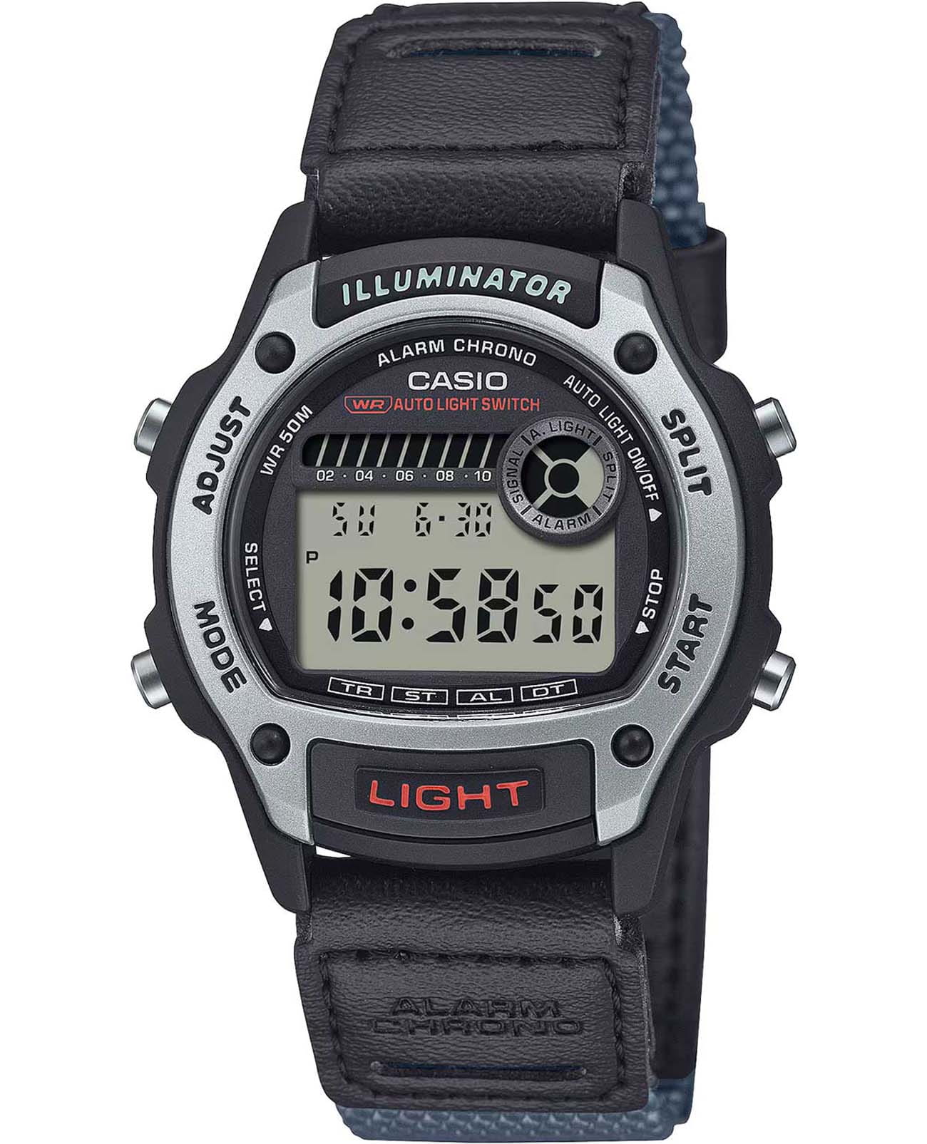 Спортивные японские мужские часы-хронографХронографФункция позволяет измерять отрезки времени с особой точностью: часы, минуты, секунды. Верным признаком хронографа является наличие на циферблате 3 дополнительных окошек-счётчиков. Casio Collection W-220HF-8A, кварцевый механизм с высокой точностью, органическое стекло. Изысканный корпус часов изготовлен из пластика. Светодиодная подсветкаСветодиодная подсветкаСветодиодная или LED-подсветка обеспечивает появление яркого холодного свечения за счёт LED-элементов - маленьких лампочек. Они потребляют минимальное количество энергии, чаще всего можно встретить 1 светодиод, в нижней части циферблата. освещает весь циферблат. Цвет подсветки: оранжевый. 12-ти и 24-х часовой формат времени. СекундомерСекундомерСекундоме́р — прибор, способный измерять интервалы времени с точностью до долей секунды. с точностью показаний 1/100с и временем измерения 24 ч. Сплит-хронографСплит-хронографИспользуется для измерения продолжительности нескольких временных отрезков, начинающихся одновременно, а заканчивающихся в разное время.. Функция второго часового поясаВторой часовой поясФункция, позволяющая отображать время двух часовых поясов одновременно., а также таймераТаймерОтсчитывает секунды в обратном направлении в заданном интервале времени., что делает часы функциональными. Батарейка рассчитана на 3 года. Класс водозащиты: 50 метров, позволит защитить корпус от случайных брызг или капель дождя. Ремешок тканевый с кожаными вставками, который изготавливается из возобновляемых органических ресурсов. Модель подчёркивает индивидуальность владельца и идеально подходит для повседневного образа. Лимитированная серия.