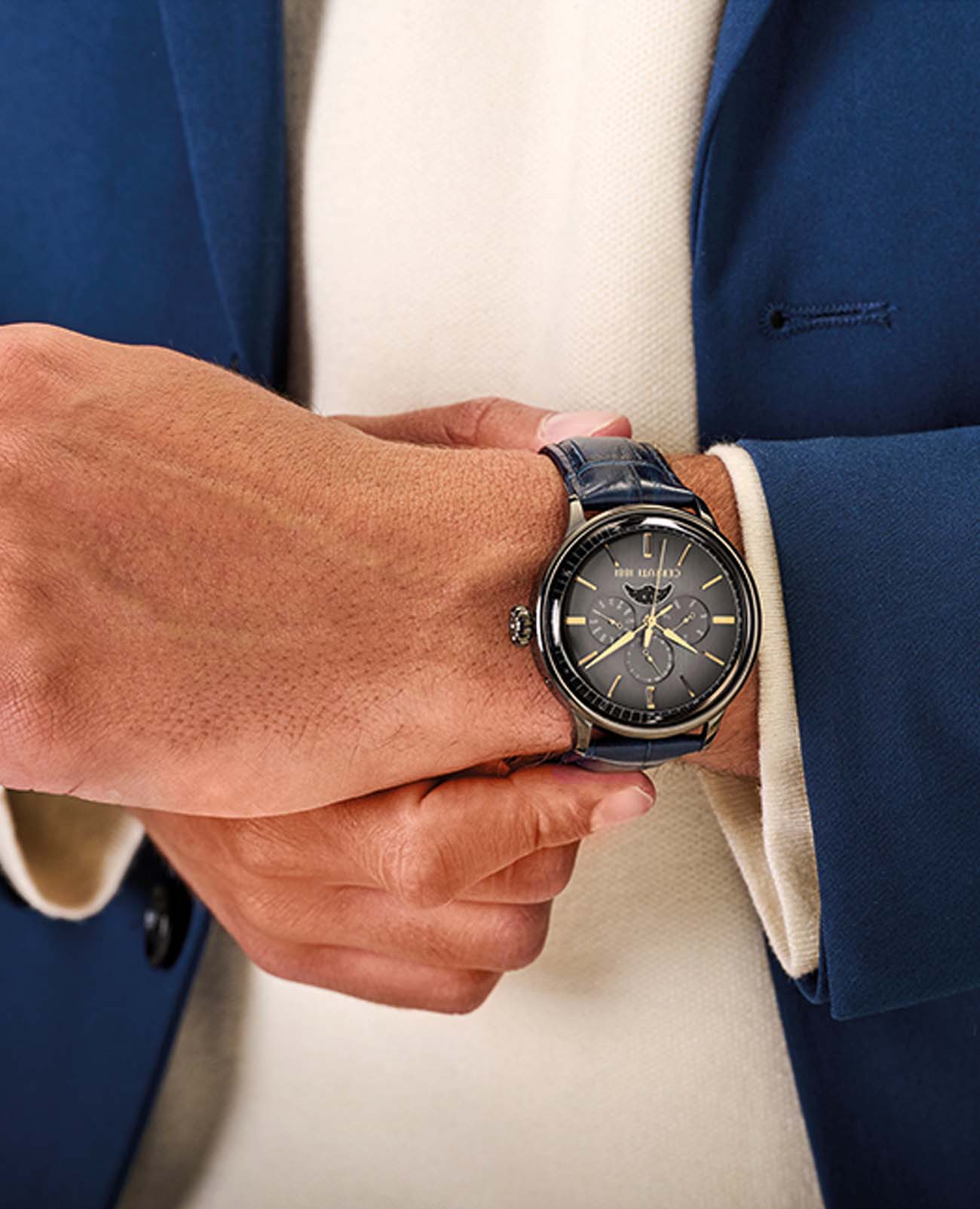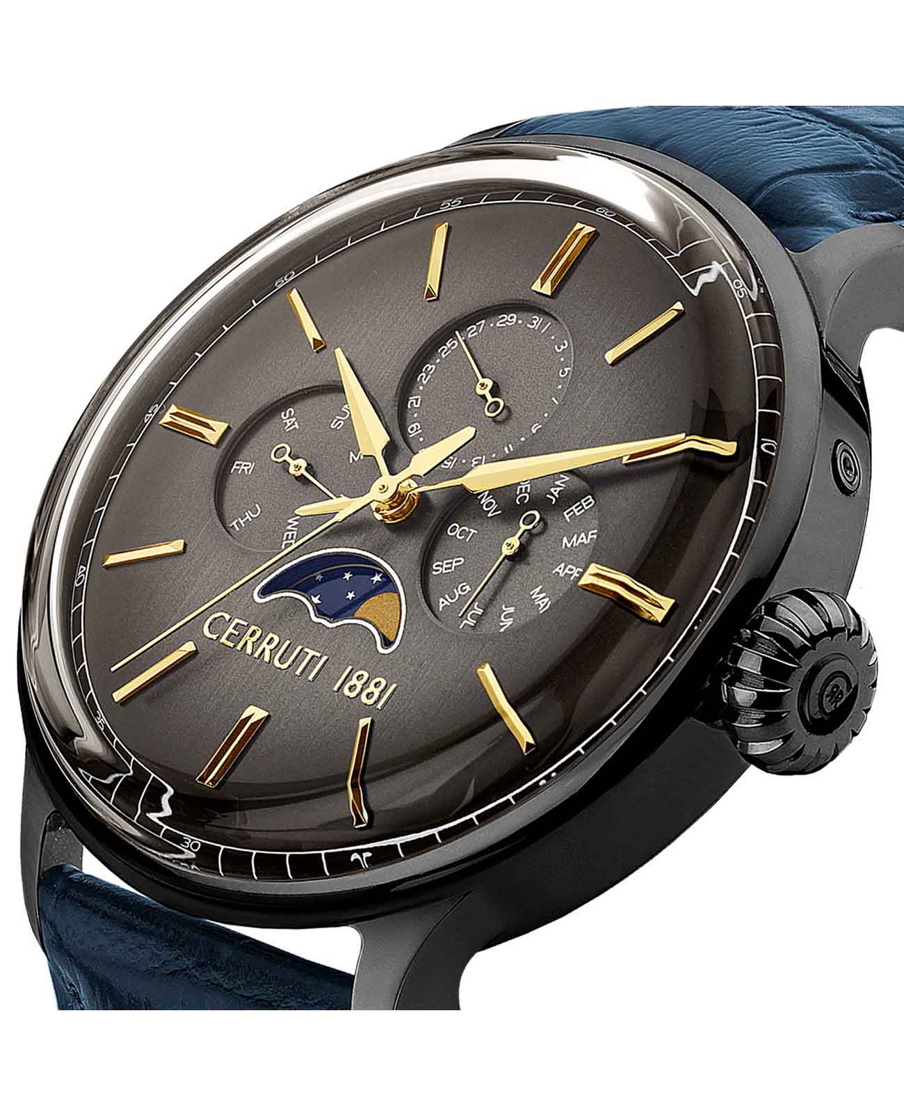 Французские мужские часы Cerruti 1881 Dervio CIWGF2224603, кварцевый механизм с высокой точностью. Минеральное стеклоМинеральное стеклоМинеральное стекло представляет собой искусственно выращенный минерал кварца. Такое стекло отличается особой устойчивостью к повреждениям и царапинам. Уступает по некоторым качествам сапфировому стеклу. устойчивое к мелким механическим повреждениям. Корпус часов изготовлен из стали с IP-покрытиемIP-покрытиеМетод ионного напыления. Демонстрирует повышенную устойчивость к истиранию, окислению и химическим веществам. Под воздействием высокого давления и температуры около 1500°C молекулы металла надёжно соединяются с частицами корпуса часов.. На циферблате расположены два дополнительных индикатора. Индикатор фаз луны находится в положении 6 часов. Класс водозащиты: 50 метров, позволит защитить корпус от случайных брызг или капель дождя. Кожаный ремешок на застёжке-бабочке с кнопкамиЗастёжка "бабочка"Такой вид застёжки дополняется предохранителями, помогающими избежать случайного раскрытия браслета. Обладают изящным исполнением. .