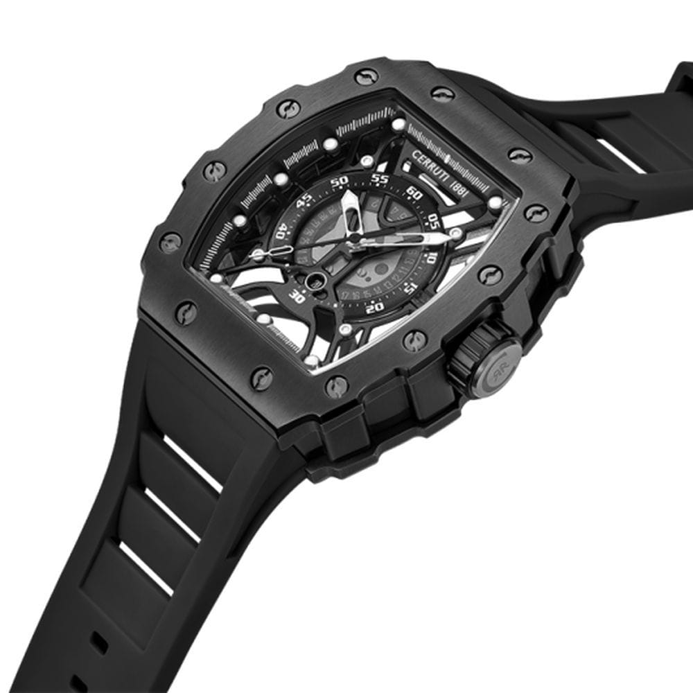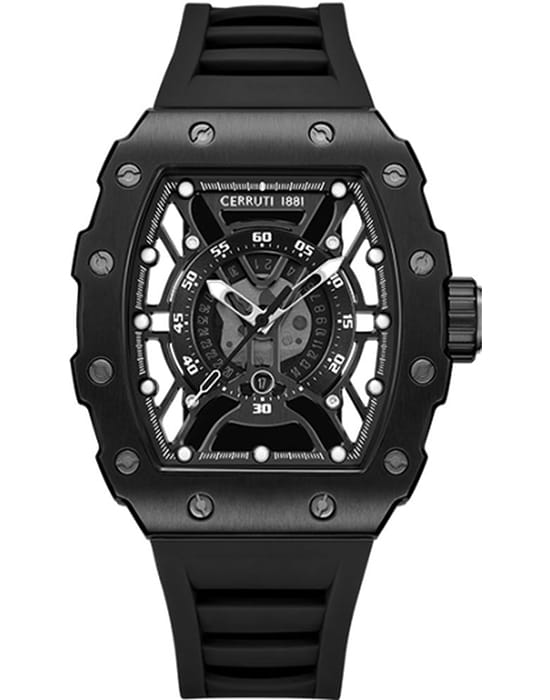 Cerruti 1881 CIWGN0057701 — эффектные мужские часы с дерзким современным дизайном, в которых сочетаются геометрическая точность линий и выразительная динамика формы. Корпус из нержавеющей стали с матовым PVD-покрытиемPVDУльтратонкое покрытие наносится в технике вакуумного напыления, сочетает в себе нитрид титана особой прочности со слоем золота или оксида хрома. Несёт в себе декоративную или защитную функцию. и мощным шестигранным безелемБезельВнешний ободок, закрепляющий стекло. В спортивных часах так называется поворотное кольцо с делениями на циферблате, выполняет роль таймера – замеряет отрезки времени на шкале. Неподвижный безель – элемент декора. Однонаправленно вращающийся безель на дайверских часах позволяет фиксировать моменты погружения и выныривания на поверхность. подчёркивает технический характер модели. Полупрозрачный скелетонизированный циферблат открывает детали механизма, придавая часам индустриальный и технологичный облик. Контрастные стрелки и метки с люминесцентным покрытиемЛюминесцентное покрытиеПозволяет считывать показания времени в темноте. Производители наносят на стрелки, часовые индексы, безель или поверхность циферблата светонакопительный состав, дающий холодное свечение. обеспечивают отличную читаемость, а прочное минеральное стеклоМинеральное стеклоМинеральное стекло представляет собой искусственно выращенный минерал кварца. Такое стекло отличается особой устойчивостью к повреждениям и царапинам. Уступает по некоторым качествам сапфировому стеклу. защищает композицию от внешних воздействий. Эластичный силиконовый ремешок гармонично сочетается с оттенками корпуса и обеспечивает комфорт при ежедневном ношении. Cerruti 1881 — это смелое воплощение итальянского стиля в спортивно-индустриальной эстетике, созданное для мужчин, уверенно идущих в ногу с временем.
