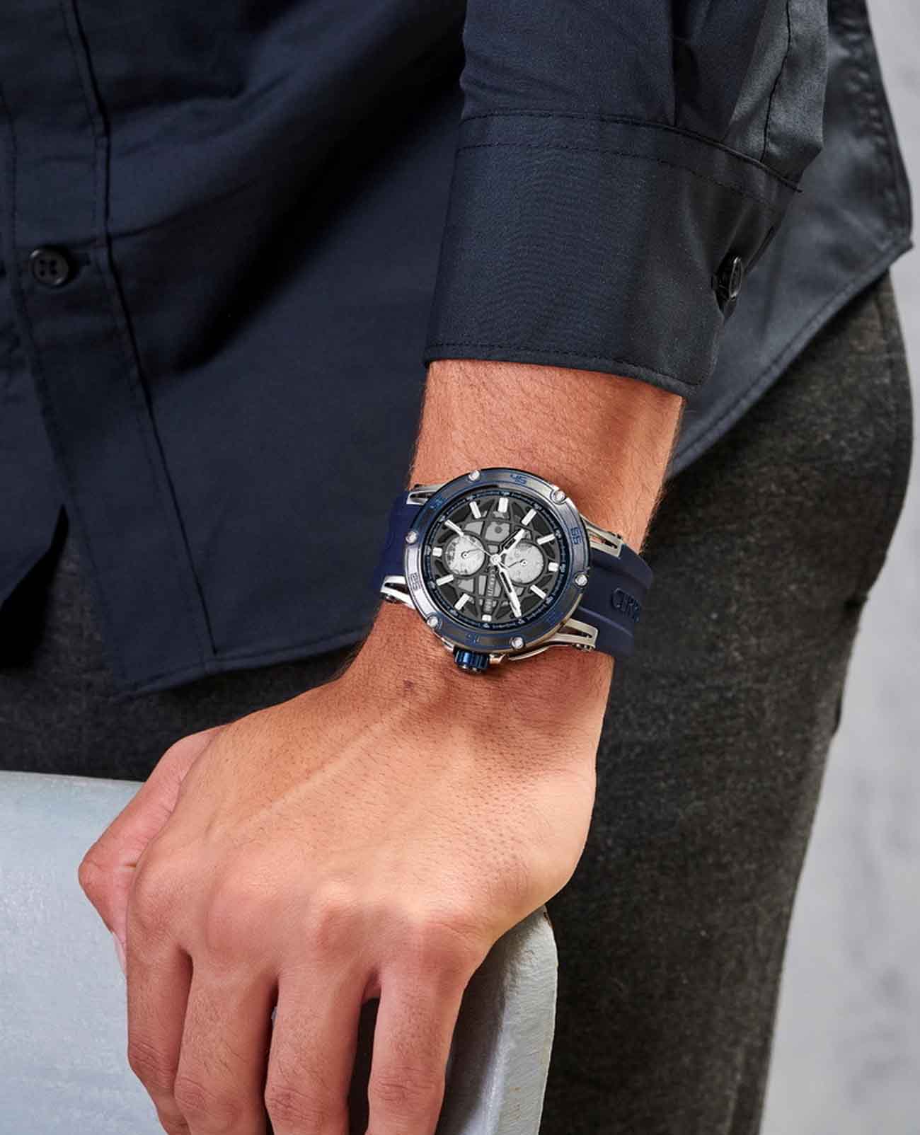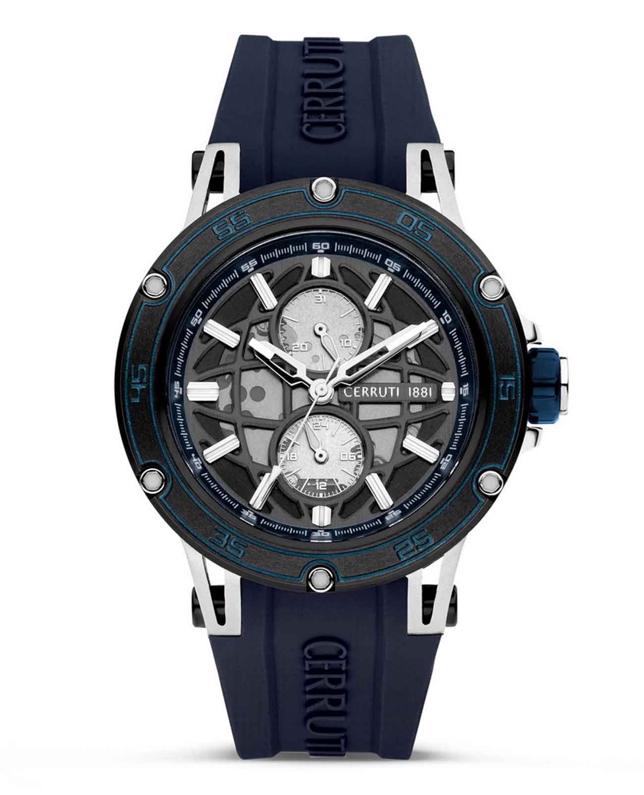 Французские мужские часы Cerruti 1881 Vallelaghi CIWGQ0007001, кварцевый механизм с высокой точностью. Минеральное стеклоМинеральное стеклоМинеральное стекло представляет собой искусственно выращенный минерал кварца. Такое стекло отличается особой устойчивостью к повреждениям и царапинам. Уступает по некоторым качествам сапфировому стеклу. устойчивое к мелким механическим повреждениям. Корпус часов изготовлен из нержавеющей стали. БезельБезельВнешний ободок, закрепляющий стекло. В спортивных часах так называется поворотное кольцо с делениями на циферблате, выполняет роль таймера – замеряет отрезки времени на шкале. Неподвижный безель – элемент декора. Однонаправленно вращающийся безель на дайверских часах позволяет фиксировать моменты погружения и выныривания на поверхность. из нержавеющей стали с IP-покрытиемIP-покрытиеМетод ионного напыления. Демонстрирует повышенную устойчивость к истиранию, окислению и химическим веществам. Под воздействием высокого давления и температуры около 1500°C молекулы металла надёжно соединяются с частицами корпуса часов.. Циферблат выполнен с метками в виде штрихов. 24-х часовой формат времени, окошко даты и дня недели вынесены на отдельный циферблат. Стрелки и метки с люминесцентным покрытиемЛюминесцентное покрытиеПозволяет считывать показания времени в темноте. Производители наносят на стрелки, часовые индексы, безель или поверхность циферблата светонакопительный состав, дающий холодное свечение.. Класс водозащиты: 100 метров, позволит плавать, нырять и заниматься другими водными видами спорта. Силиконовый ремешок на застёжке-бабочке с кнопкамиЗастёжка "бабочка"Такой вид застёжки дополняется предохранителями, помогающими избежать случайного раскрытия браслета. Обладают изящным исполнением. .