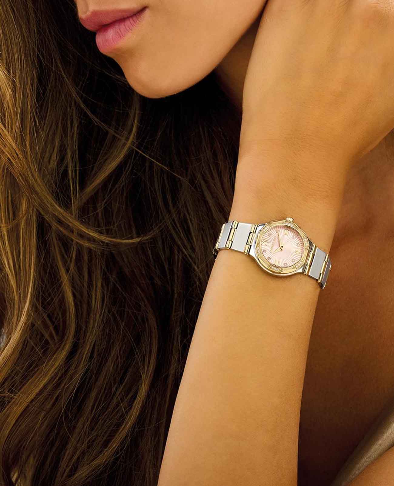 Класс водозащиты: 50 метров, позволит защитить корпус от случайных брызг или капель дождя. Стальной браслет с частичным IP-покрытиемIP-покрытиеМетод ионного напыления. Демонстрирует повышенную устойчивость к истиранию, окислению и химическим веществам. Под воздействием высокого давления и температуры около 1500°C молекулы металла надёжно соединяются с частицами корпуса часов. на застёжке-бабочке с кнопкамиЗастёжка "бабочка"Такой вид застёжки дополняется предохранителями, помогающими избежать случайного раскрытия браслета. Обладают изящным исполнением. .