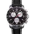 Элегантный хронографХронографФункция позволяет измерять отрезки времени с особой точностью: часы, минуты, секунды. Верным признаком хронографа является наличие на циферблате 3 дополнительных окошек-счётчиков. с ремешком из натуральной кожи идеально завершит образ делового мужчины. Швейцарский кварцевый калибр ETA G10.211 измеряет время с высокой точностью хода. Стрелки имеют люминесцентное покрытиеЛюминесцентное покрытиеПозволяет считывать показания времени в темноте. Производители наносят на стрелки, часовые индексы, безель или поверхность циферблата светонакопительный состав, дающий холодное свечение.. Функции: секундомер, EOLEOLПредставляет собой систему, уведомляющую владельца часов о необходимости замены элемента питания. За 2 недели до полного разряда батарейки секундная стрелка перестаёт ходить чётко и начинает перепрыгивать на 3-4 деления., дата, тахиметрТахиметрРазмеченная шкала, располагается на ободке или безеле часов. Тахиметр позволяет рассчитать скорость на определённом участке пути, расстояние измеряется в километрах или милях..