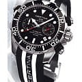 Спортивный аксессуар с классическими деталями дизайна имеет стильный полосатый ремешок из силикона, такой материал отличается гибкостью и водоотталкивающими свойствами. Модель комплектуется премиальным калибром ETA 7753 ValjouxValjouxПремиальный калибр от швейцарской компании ETA c уникальной отделкой механизма. Отличается увеличенным запасом хода от 45 до 60 часов, в зависимости от калибра, точность хода составляет +/- 5 секунд в сутки. с запасом хода 54 часов. Сапфировое стекло с антибликовой обработкой. Вращающийся безельБезельВнешний ободок, закрепляющий стекло. В спортивных часах так называется поворотное кольцо с делениями на циферблате, выполняет роль таймера – замеряет отрезки времени на шкале. Неподвижный безель – элемент декора. Однонаправленно вращающийся безель на дайверских часах позволяет фиксировать моменты погружения и выныривания на поверхность.. Водостойкость при давлении 20 бар. ХронографХронографФункция позволяет измерять отрезки времени с особой точностью: часы, минуты, секунды. Верным признаком хронографа является наличие на циферблате 3 дополнительных окошек-счётчиков., секундомер, апертура даты. Люминесцентная подсветкаЛюминесцентное покрытиеПозволяет считывать показания времени в темноте. Производители наносят на стрелки, часовые индексы, безель или поверхность циферблата светонакопительный состав, дающий холодное свечение.. Диаметр корпуса: 45 мм.