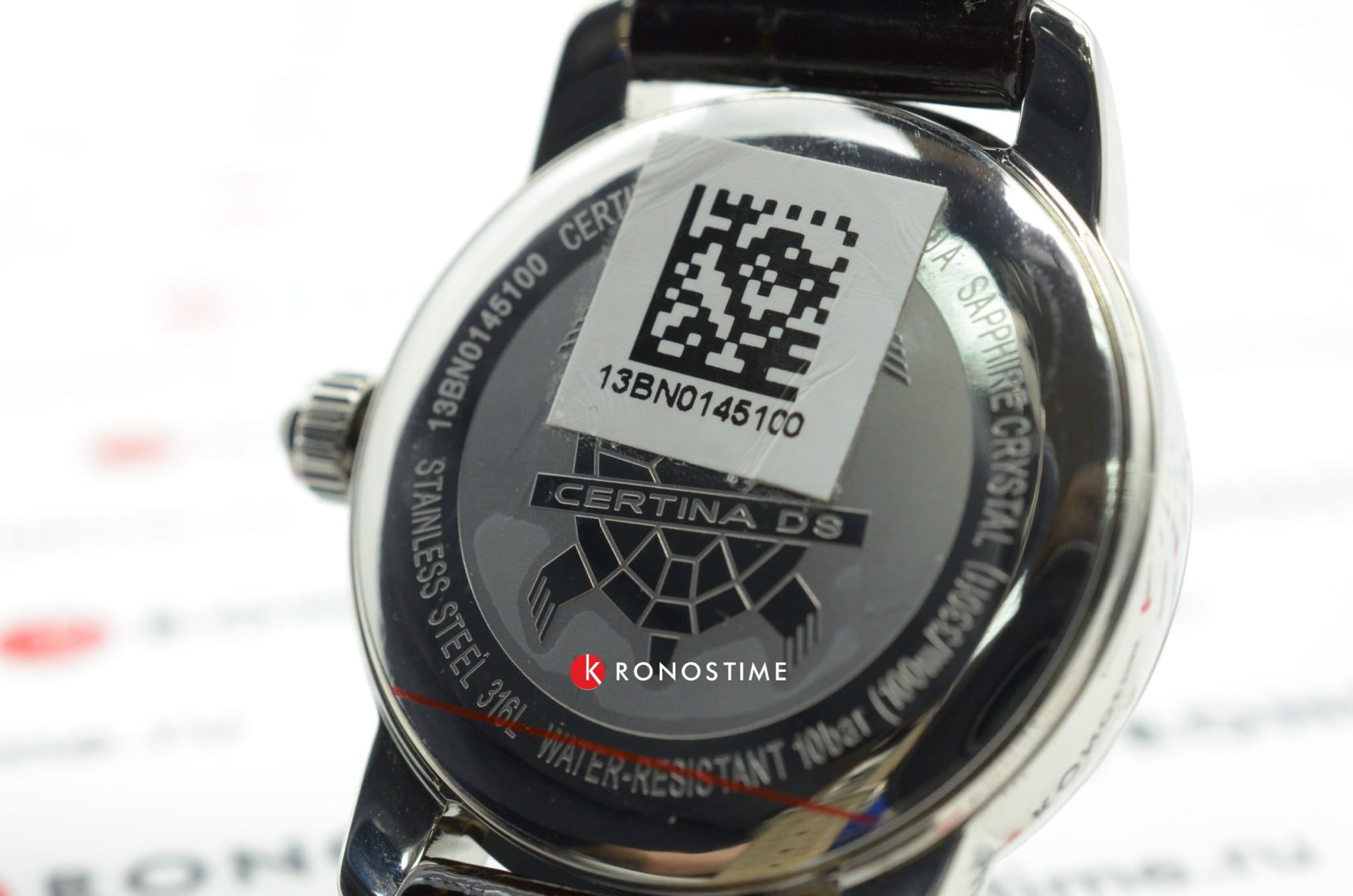Аксессуар в сдержанной расцветке имеет оригинальные индексы в виде капель. Швейцарский кварцевый механизм ETA F06.161. Сапфировое стекло. Люминесцентное покрытиеЛюминесцентное покрытиеПозволяет считывать показания времени в темноте. Производители наносят на стрелки, часовые индексы, безель или поверхность циферблата светонакопительный состав, дающий холодное свечение. стрелок. Концепция Двойной надёжности DSDS ConceptDouble Security Concept, обозначает двойную надёжность и безупречную точность часов Certina. Двойная система защиты подразумевает обеспечение максимальной устойчивости к ударам и высоких показателей водонепроницаемости.. Водонепроницаемость 10 бар. Календарь.