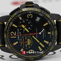Наручные часы в спортивном стиле дополнены красными и жёлтыми деталями, что символизирует скоростное напряжение на гоночной трассе. Отличным дополнением стал кожаный ремешок. Кварцевый швейцарский механизм ETA G10.212 Precidrive™Precidrive™Инновационный кварцевый механизм Certina. Часы, оснащённые этим швейцарским калибром, приравниваются к точности к сертифицированным хронометрам, точность хода составляет +/-10 секунд в год. с повышенной точностью хода, подтверждённой сертификатом COSCСертификат COSCОфициальный сертификат, подтверждающий то, что часы ходят с особо высокой точностью. Для получения документа часы подвергаются тестовым испытаниям, разработанным швейцарским институтом тестирования хронометров COSC. Допустимая норма для механических часов -4/+6 секунд в день, для кварцевых моделей +/- 0,07 секунд в день.. Система DS ConceptDS ConceptDouble Security Concept, обозначает двойную надёжность и безупречную точность часов Certina. Двойная система защиты подразумевает обеспечение максимальной устойчивости к ударам и высоких показателей водонепроницаемости.. Двухстороннее антибликовое покрытие для стекла из сапфира. Корпус из нержавеющей стали с PVD-покрытиемPVDУльтратонкое покрытие наносится в технике вакуумного напыления, сочетает в себе нитрид титана особой прочности со слоем золота или оксида хрома. Несёт в себе декоративную или защитную функцию.. Стрелки и индексы с составом SuperLumiNovaЛюминесцентное покрытиеПозволяет считывать показания времени в темноте. Производители наносят на стрелки, часовые индексы, безель или поверхность циферблата светонакопительный состав, дающий холодное свечение.. Заводная головка с защитой. ХронографХронографФункция позволяет измерять отрезки времени с особой точностью: часы, минуты, секунды. Верным признаком хронографа является наличие на циферблате 3 дополнительных окошек-счётчиков., шкала тахиметраТахиметрРазмеченная шкала, располагается на ободке или безеле часов. Тахиметр позволяет рассчитать скорость на определённом участке пути, расстояние измеряется в километрах или милях., календарь, секундомер, индикатор EOLEOLПредставляет собой систему, уведомляющую владельца часов о необходимости замены элемента питания. За 2 недели до полного разряда батарейки секундная стрелка перестаёт ходить чётко и начинает перепрыгивать на 3-4 деления., Lap-функция измерения промежуточного времени (круга). Диаметр корпуса: 41 мм.