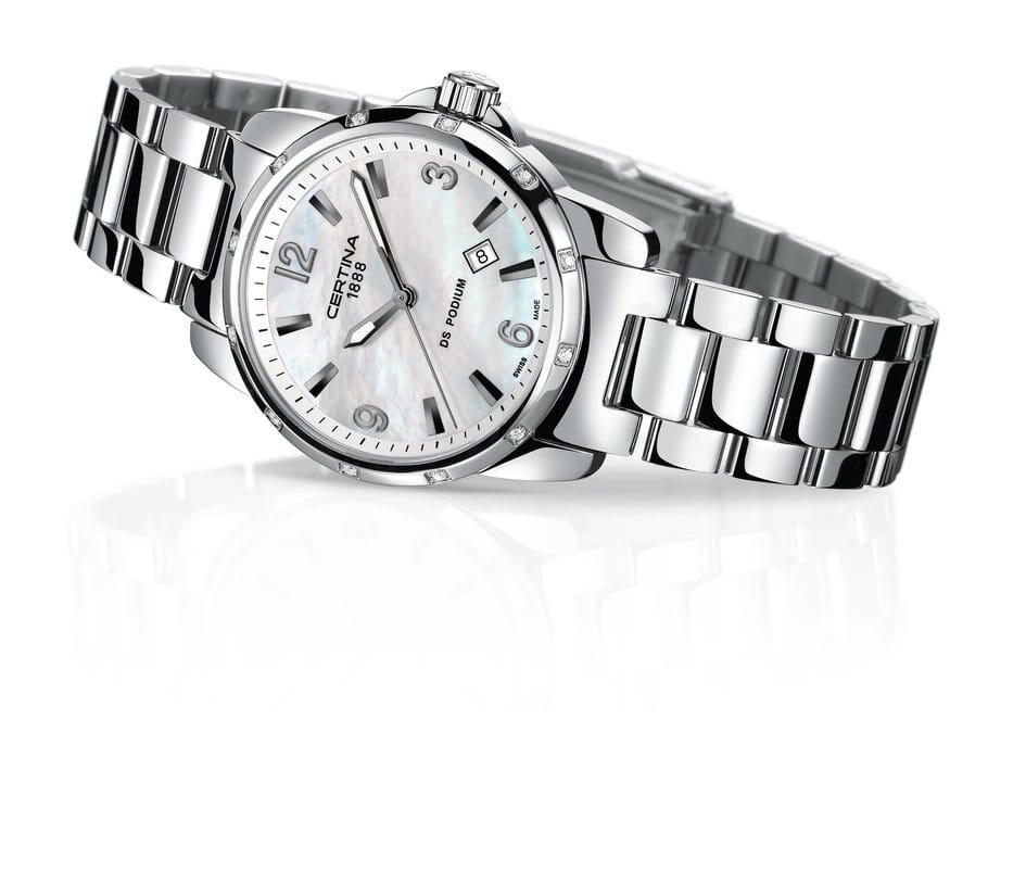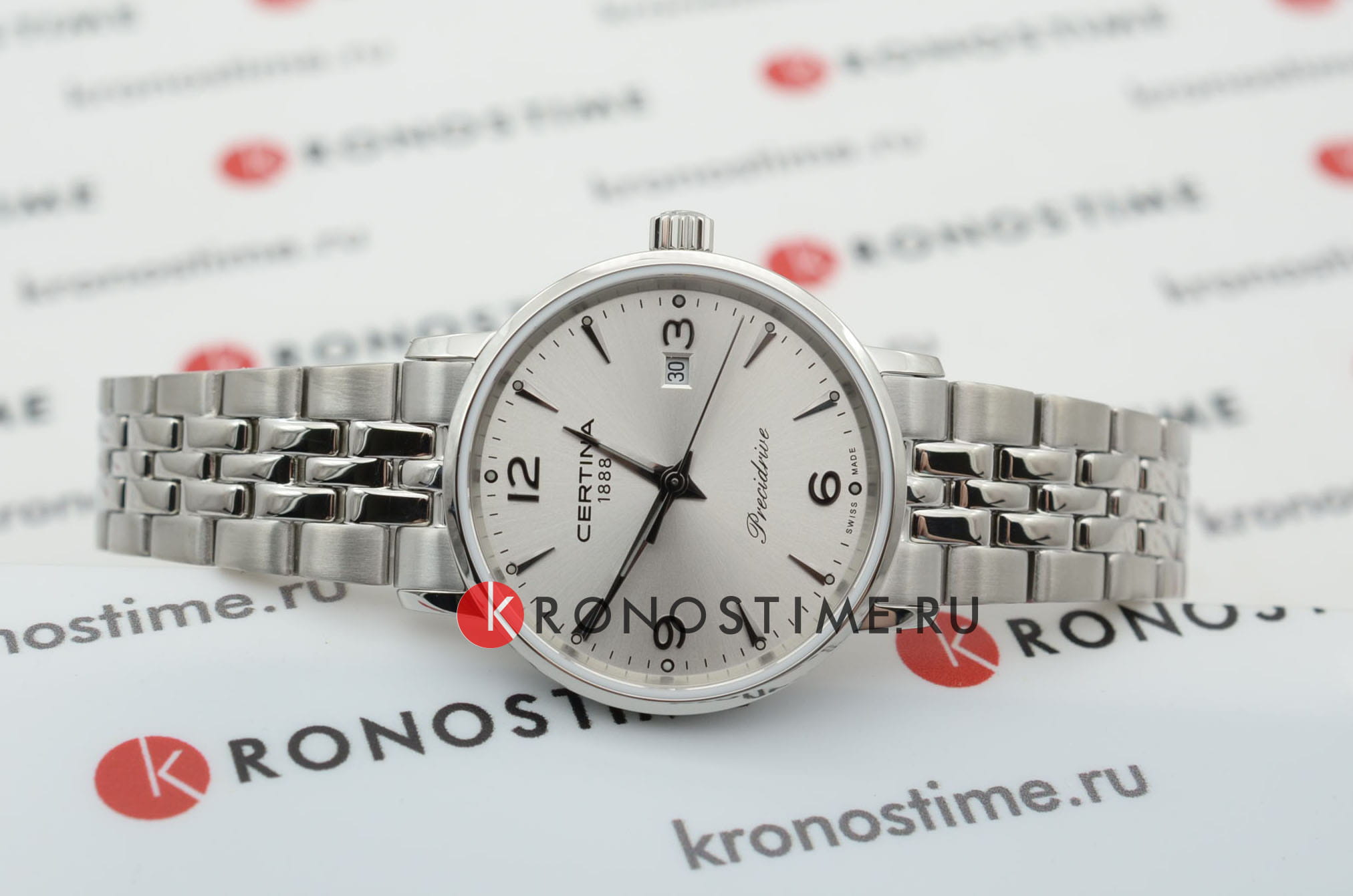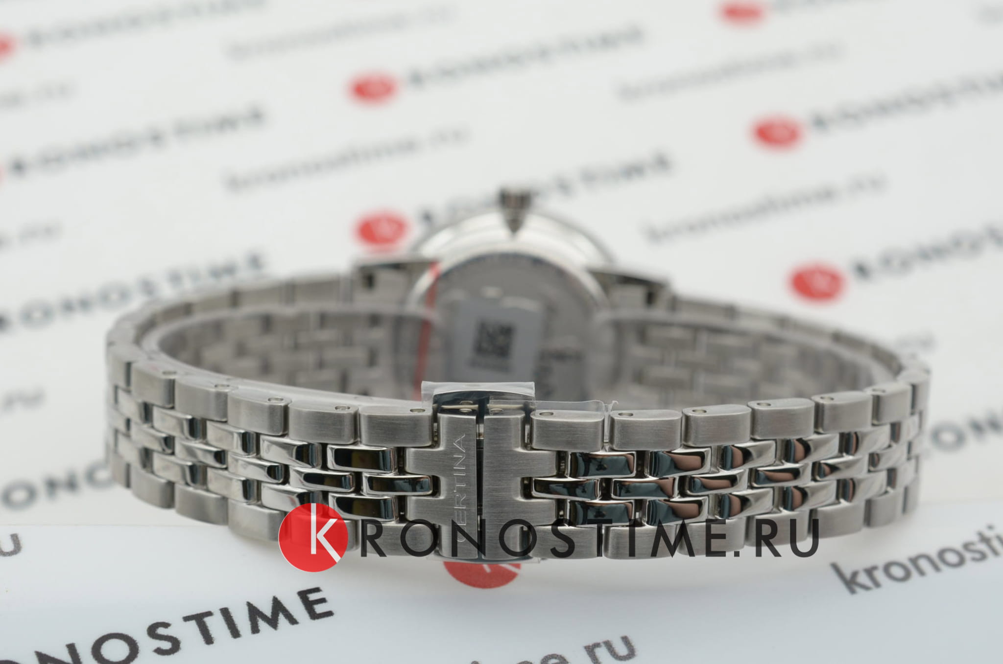 Модель отражает элегантность и изысканность. Швейцарский кварцевый механизм ETA F03.411 Precidrive™Precidrive™Инновационный кварцевый механизм Certina. Часы, оснащённые этим швейцарским калибром, приравниваются к точности к сертифицированным хронометрам, точность хода составляет +/-10 секунд в год.. Корпус и браслет из нержавеющей стали 316L. Система DS ConceptDS ConceptDouble Security Concept, обозначает двойную надёжность и безупречную точность часов Certina. Двойная система защиты подразумевает обеспечение максимальной устойчивости к ударам и высоких показателей водонепроницаемости.. Сапфировое стекло с антибликовым покрытием. Индикация числа, функция EOLEOLПредставляет собой систему, уведомляющую владельца часов о необходимости замены элемента питания. За 2 недели до полного разряда батарейки секундная стрелка перестаёт ходить чётко и начинает перепрыгивать на 3-4 деления..