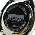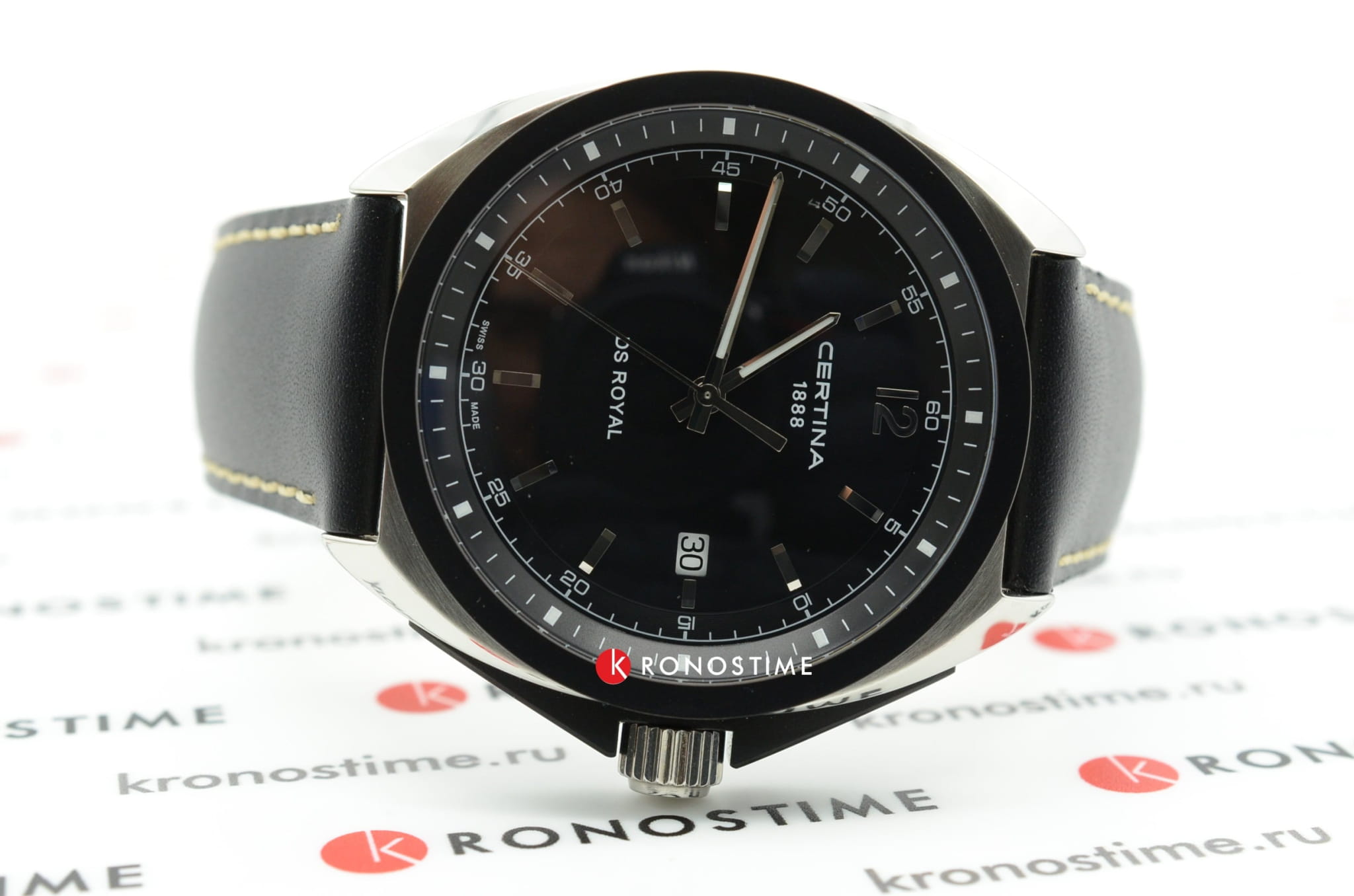 Спортивный дизайн выражен в классическом оформлении. Швейцарский кварцевый механизм ETA 955.112. Чёрный ремешок из натуральной кожи. Сапфировое стекло. Система DS ConceptDS ConceptDouble Security Concept, обозначает двойную надёжность и безупречную точность часов Certina. Двойная система защиты подразумевает обеспечение максимальной устойчивости к ударам и высоких показателей водонепроницаемости.. Частичное PVD-покрытиеPVDУльтратонкое покрытие наносится в технике вакуумного напыления, сочетает в себе нитрид титана особой прочности со слоем золота или оксида хрома. Несёт в себе декоративную или защитную функцию. корпуса. Люминесцентная подсветкаЛюминесцентное покрытиеПозволяет считывать показания времени в темноте. Производители наносят на стрелки, часовые индексы, безель или поверхность циферблата светонакопительный состав, дающий холодное свечение.. Индикация числа.