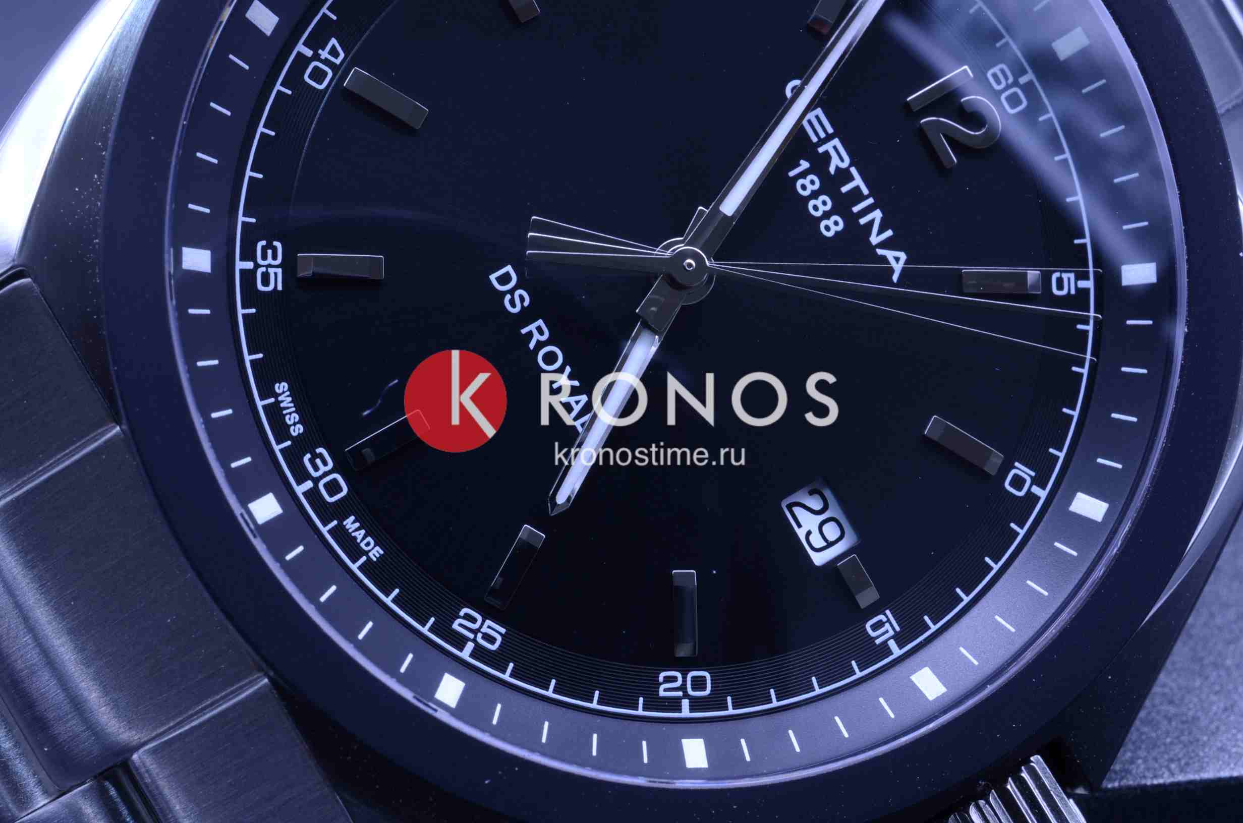 Спортивный дизайн выражен в классическом оформлении. Швейцарский кварцевый механизм ETA 955.112. Стальной корпус и браслет. Сапфировое стекло. Система DS ConceptDS ConceptDouble Security Concept, обозначает двойную надёжность и безупречную точность часов Certina. Двойная система защиты подразумевает обеспечение максимальной устойчивости к ударам и высоких показателей водонепроницаемости.. Частичное PVD-покрытиеPVDУльтратонкое покрытие наносится в технике вакуумного напыления, сочетает в себе нитрид титана особой прочности со слоем золота или оксида хрома. Несёт в себе декоративную или защитную функцию.. Люминесцентная подсветкаЛюминесцентное покрытиеПозволяет считывать показания времени в темноте. Производители наносят на стрелки, часовые индексы, безель или поверхность циферблата светонакопительный состав, дающий холодное свечение.. Индикация числа.