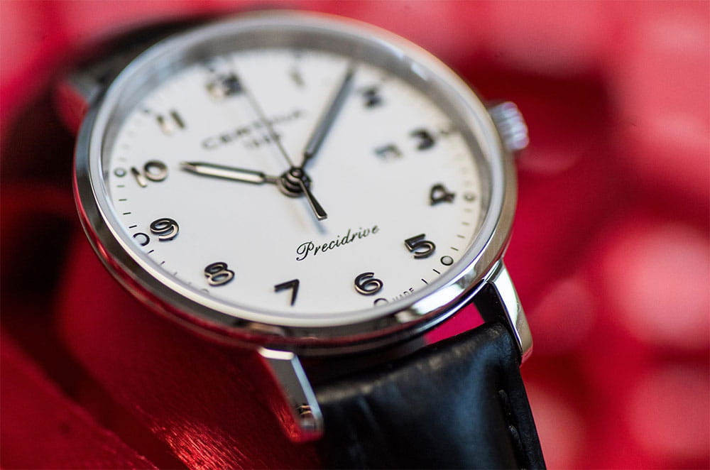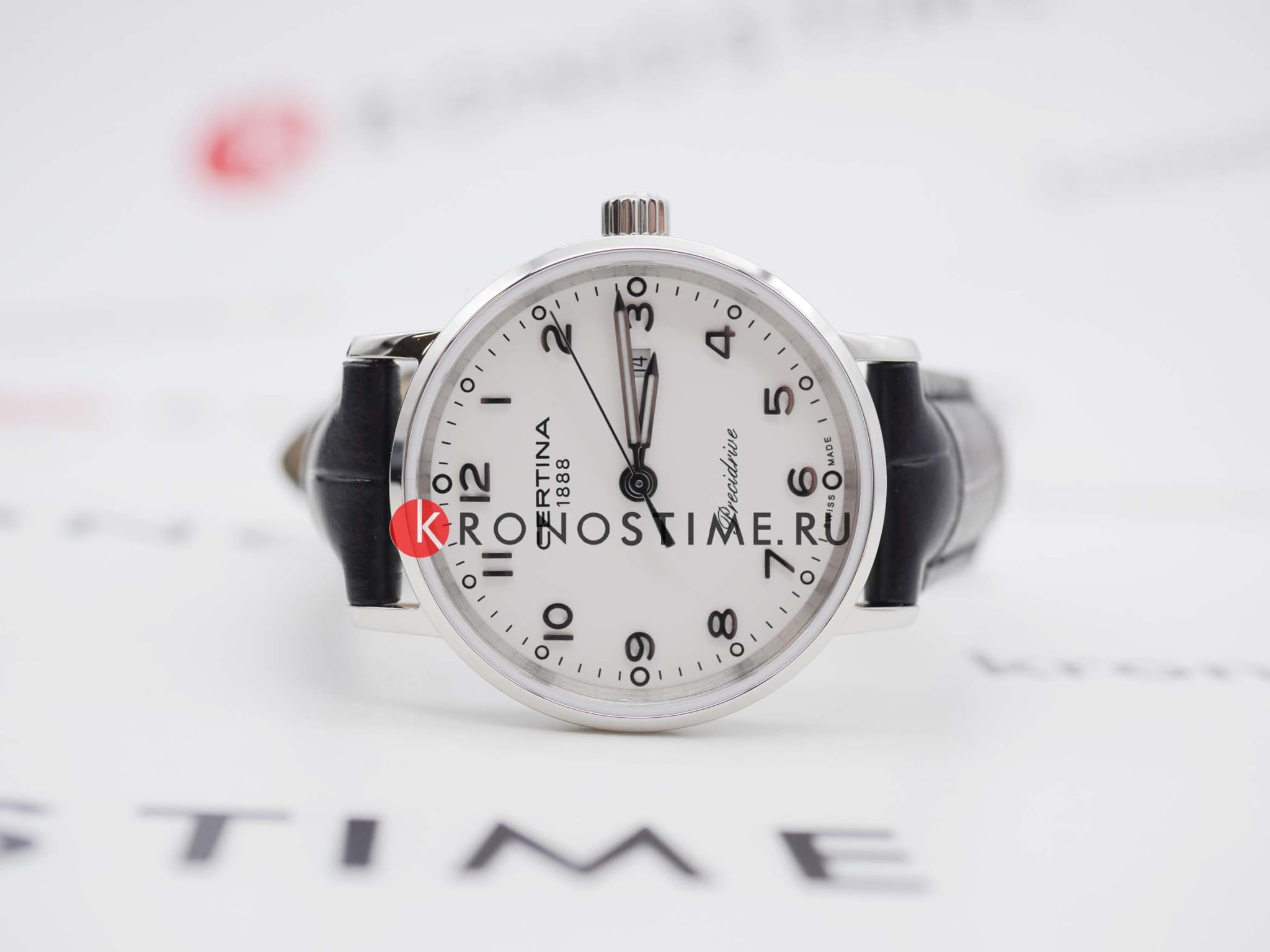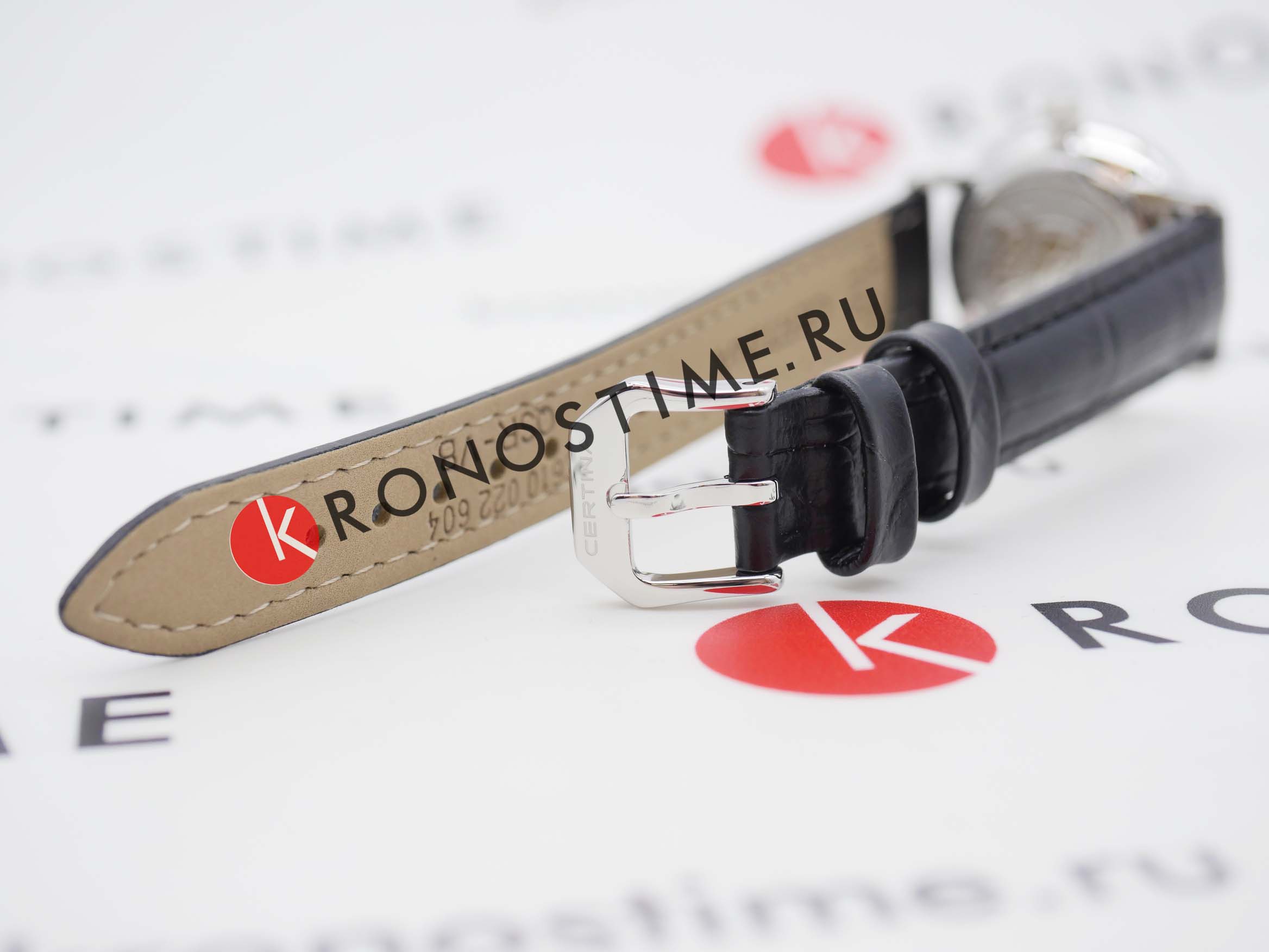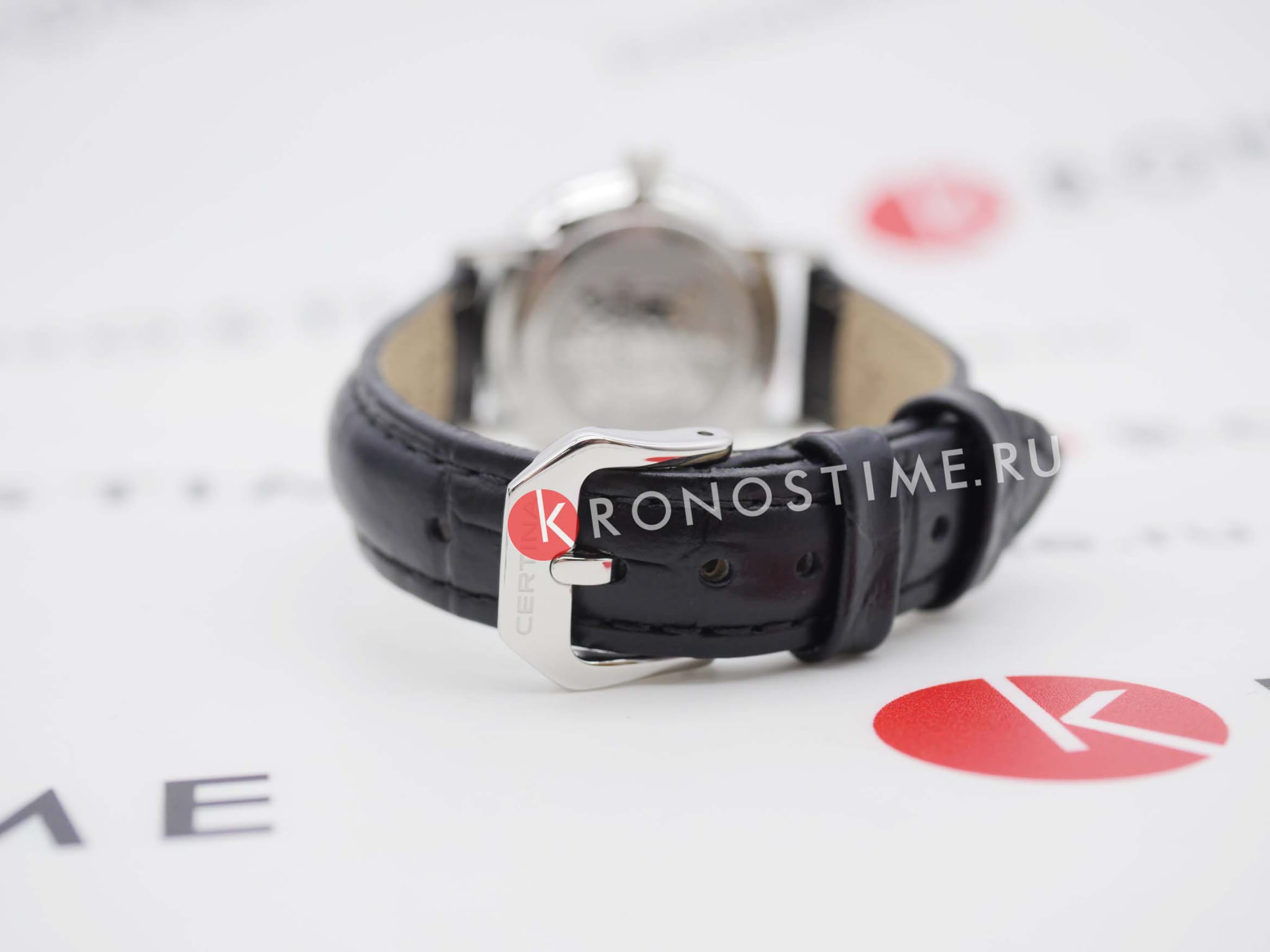 Классический дизайн всегда актуален. Швейцарский кварцевый калибр ETA F03.411 Precidrive™Precidrive™Инновационный кварцевый механизм Certina. Часы, оснащённые этим швейцарским калибром, приравниваются к точности к сертифицированным хронометрам, точность хода составляет +/-10 секунд в год.. Сапфировое стекло сапфира с покрытием «антиблик». Водозащита WR 100. Ремешок из натуральной кожи. Апертура даты, функция EOLEOLПредставляет собой систему, уведомляющую владельца часов о необходимости замены элемента питания. За 2 недели до полного разряда батарейки секундная стрелка перестаёт ходить чётко и начинает перепрыгивать на 3-4 деления..