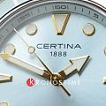 Certina DS Action C048.410.44.351.00 – элегантные мужские часы, сочетающие современный дизайн и высокую функциональность. Корпус диаметром 40 мм выполнен из титана, что обеспечивает лёгкость, прочность и гипоаллергенные свойства. Светло-голубой циферблат с метками и стрелками, покрытыми люминесцентным покрытиемЛюминесцентное покрытиеПозволяет считывать показания времени в темноте. Производители наносят на стрелки, часовые индексы, безель или поверхность циферблата светонакопительный состав, дающий холодное свечение., обеспечивает отличную читаемость в любых условиях, а его поверхность защищена сапфировым стекломСапфировое стеклоПрочный и надёжный материал из кристалла сапфира синтетического происхождения, характеризующийся особой твёрдостью и устойчивостью к царапинам и повреждениям. с антибликовым покрытиемАнтибликовое покрытиеСлой оксида металла в 0,13-0,3 микрон, благодаря которому стекло часов не бликует и не отражает свет. Антибликовое покрытие уменьшает отражение света в 10 раз, обеспечивая отличную читаемость показателей циферблата., устойчивым к царапинам.БезельБезельВнешний ободок, закрепляющий стекло. В спортивных часах так называется поворотное кольцо с делениями на циферблате, выполняет роль таймера – замеряет отрезки времени на шкале. Неподвижный безель – элемент декора. Однонаправленно вращающийся безель на дайверских часах позволяет фиксировать моменты погружения и выныривания на поверхность. с PVD-покрытиемPVDУльтратонкое покрытие наносится в технике вакуумного напыления, сочетает в себе нитрид титана особой прочности со слоем золота или оксида хрома. Несёт в себе декоративную или защитную функцию.. Часы оснащены швейцарским кварцевым механизмом ETA F06.412 с технологией Precidrive™Precidrive™Инновационный кварцевый механизм Certina. Часы, оснащённые этим швейцарским калибром, приравниваются к точности к сертифицированным хронометрам, точность хода составляет +/-10 секунд в год., обеспечивающей исключительную точность хода. Функция EOLEOLПредставляет собой систему, уведомляющую владельца часов о необходимости замены элемента питания. За 2 недели до полного разряда батарейки секундная стрелка перестаёт ходить чётко и начинает перепрыгивать на 3-4 деления. (индикатор окончания заряда батареи) предупреждает о необходимости замены элемента питания. Браслет из титана оснащён системой быстрой замены, позволяющей легко адаптировать стиль часов. Водонепроницаемость 300 метров (30 бар) делает модель идеальным выбором для плавания и дайвинга.