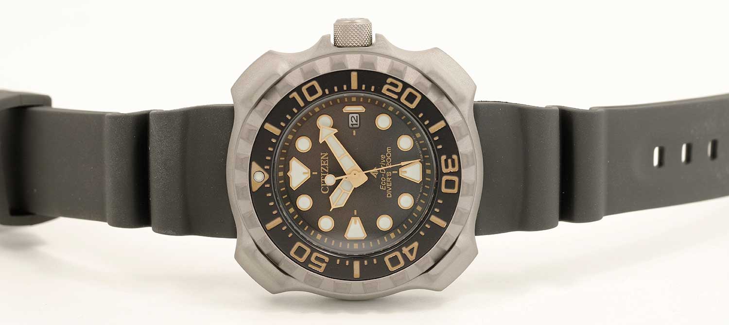 Мужские часы Citizen Promaster BN0220-16E дайверские часы станут верным спутником в вашей энергичной и спортивной жизни. Корпус из титана (Super Titanium) диаметром 47,9 мм идеально сбалансирован. Минеральное стеклоМинеральное стеклоМинеральное стекло представляет собой искусственно выращенный минерал кварца. Такое стекло отличается особой устойчивостью к повреждениям и царапинам. Уступает по некоторым качествам сапфировому стеклу. обеспечивает отличную защиту циферблата от царапин. Часы работают на основе кварцевого механизма, питание от солнечной энергии, запас энергии на 180 дней. Полиуретановый ремешок на стандартной застёжке идеально дополняют дизайн часов, обеспечивая комфортное ношение. Стрелки и метки на циферблате имеют люминесцентное покрытиеЛюминесцентное покрытиеПозволяет считывать показания времени в темноте. Производители наносят на стрелки, часовые индексы, безель или поверхность циферблата светонакопительный состав, дающий холодное свечение. позволяющее легко определять время даже в темноте. Титановый безельБезельВнешний ободок, закрепляющий стекло. В спортивных часах так называется поворотное кольцо с делениями на циферблате, выполняет роль таймера – замеряет отрезки времени на шкале. Неподвижный безель – элемент декора. Однонаправленно вращающийся безель на дайверских часах позволяет фиксировать моменты погружения и выныривания на поверхность. с Duratect MRK покрытием вращается в одном направлении. Функция индикации заряда (EOL) и предотвращения перезарядки. Окошко даты находится в положении 3 часа. Часы обладают впечатляющей водонепроницаемостью до 200WR, что делает их идеальными для плавания, ныряния и погружений с аквалангом.