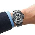 Японские часы Citizen BU0060-09H сочетают в себе современные технологии и элегантный дизайн. Модель оснащена надежным кварцевым механизмом с инновационной системой Eco-Drive, которая работает на солнечной энергии и не требует замены батарейки, обеспечивая запас хода до 180 дней. Дополнительные функции включают индикацию даты, дня недели, месяца, а также фаз Луны. Специальный индикатор заряда и система предотвращения перезарядки гарантируют стабильную работу часов. Корпус выполнен из легкого и прочного титана диаметром 44 мм, а устойчивое к царапинам сапфировое стеклоСапфировое стеклоПрочный и надёжный материал из кристалла сапфира синтетического происхождения, характеризующийся особой твёрдостью и устойчивостью к царапинам и повреждениям. надежно защищает циферблат. Водостойкость уровня WR 100 позволяет использовать часы при плавании и в повседневной жизни. Черный кожаный ремешок с раскладной застёжкойРаскладная застёжкаТакой тип застёжки используется только на браслетах из металла. Она никогда не раскрывается полностью, происходит разделение на 2 и более частей. Раскладывающая застёжка снизит вероятность потери часов к минимуму. подчеркивает солидный внешний вид модели. Стрелки с люминесцентным покрытиемЛюминесцентное покрытиеПозволяет считывать показания времени в темноте. Производители наносят на стрелки, часовые индексы, безель или поверхность циферблата светонакопительный состав, дающий холодное свечение. позволяют легко считывать время даже в условиях недостаточного освещения.