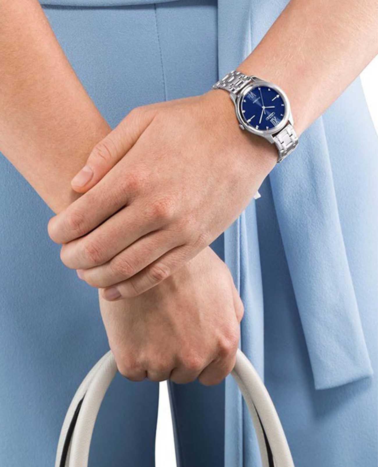 Часы Citizen EM0500-73L — это стильная модель, сочетающая в себе утонченную классику и современные технологии. Корпус и браслет изготовлены из прочной нержавеющей стали, что обеспечивает не только износостойкость, но и элегантный внешний вид. Синий циферблат отличается кристаллами и лаконичным оформлением и защищён надёжным минеральным стекломМинеральное стеклоМинеральное стекло представляет собой искусственно выращенный минерал кварца. Такое стекло отличается особой устойчивостью к повреждениям и царапинам. Уступает по некоторым качествам сапфировому стеклу., устойчивым к царапинам. Часы оснащены инновационной системой Eco-Drive, которая позволяет заряжаться от любого источника света и не требует замены батарейки, а запас энергии составляет до 180 дней. Механизм Citizen E031 гарантирует точность хода, а функция индикации заряда EOLEOLПредставляет собой систему, уведомляющую владельца часов о необходимости замены элемента питания. За 2 недели до полного разряда батарейки секундная стрелка перестаёт ходить чётко и начинает перепрыгивать на 3-4 деления. своевременно подскажет о необходимости подзарядки. Водозащита до 50 метров обеспечивает дополнительную практичность и защищает механизм от влаги при повседневном использовании. Браслет шириной 14 мм и длиной 143 мм удобно фиксируется на запястье с помощью раскладной застёжкиРаскладная застёжкаТакой тип застёжки используется только на браслетах из металла. Она никогда не раскрывается полностью, происходит разделение на 2 и более частей. Раскладывающая застёжка снизит вероятность потери часов к минимуму. с системой блокировки, что обеспечивает надёжность и комфорт в течение всего дня. Диаметр корпуса составляет 32 мм, а толщина — 7,6 мм, благодаря чему часы выглядят изящно и подходят для любого случая.