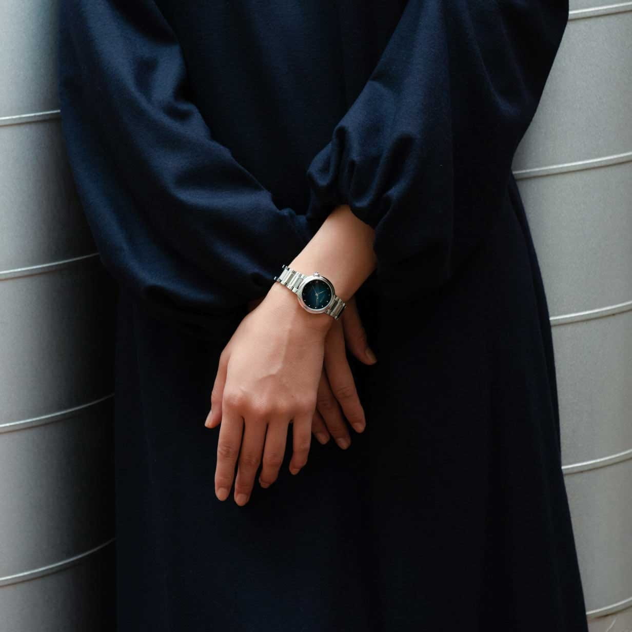Часы Citizen EM0910-80N — воплощение изысканности и современных технологий, выполненное в Японии. Корпус и литой браслет изготовлены из прочной нержавеющей стали, что гарантирует долговечность и элегантный внешний вид. Перламутровый синий циферблат с завораживающими переливами украшен бриллиантом, а часовые метки выполнены в виде точек, что придаёт образу особую утонченность. Заводная головка с защитой находится в положении 8 часов и также украшена камнем. Защиту от царапин обеспечивает сапфировое стеклоСапфировое стеклоПрочный и надёжный материал из кристалла сапфира синтетического происхождения, характеризующийся особой твёрдостью и устойчивостью к царапинам и повреждениям., сохраняющее безупречный вид часов на длительное время. Модель оснащена инновационной системой Eco-Drive, работающей на солнечной энергии и не требующей замены батарейки, с запасом хода до 180 дней. Предусмотрена функция индикации уровня заряда (EOLEOLПредставляет собой систему, уведомляющую владельца часов о необходимости замены элемента питания. За 2 недели до полного разряда батарейки секундная стрелка перестаёт ходить чётко и начинает перепрыгивать на 3-4 деления.) и предотвращения перезарядки. Диаметр корпуса составляет 30 мм, толщина — 8,5 мм, вес — 74 г, что обеспечивает комфортное ношение в течение всего дня. Водозащита уровня 50WR позволяет не снимать часы при мытье рук или в дождливую погоду. Браслет с застежкой «бабочка»Застёжка "бабочка"Такой вид застёжки дополняется предохранителями, помогающими избежать случайного раскрытия браслета. Обладают изящным исполнением. обеспечивает дополнительный комфорт и безопасность при носке. Эта модель станет не только стильным аксессуаром, но и символом безупречного вкуса и внимания к деталям.