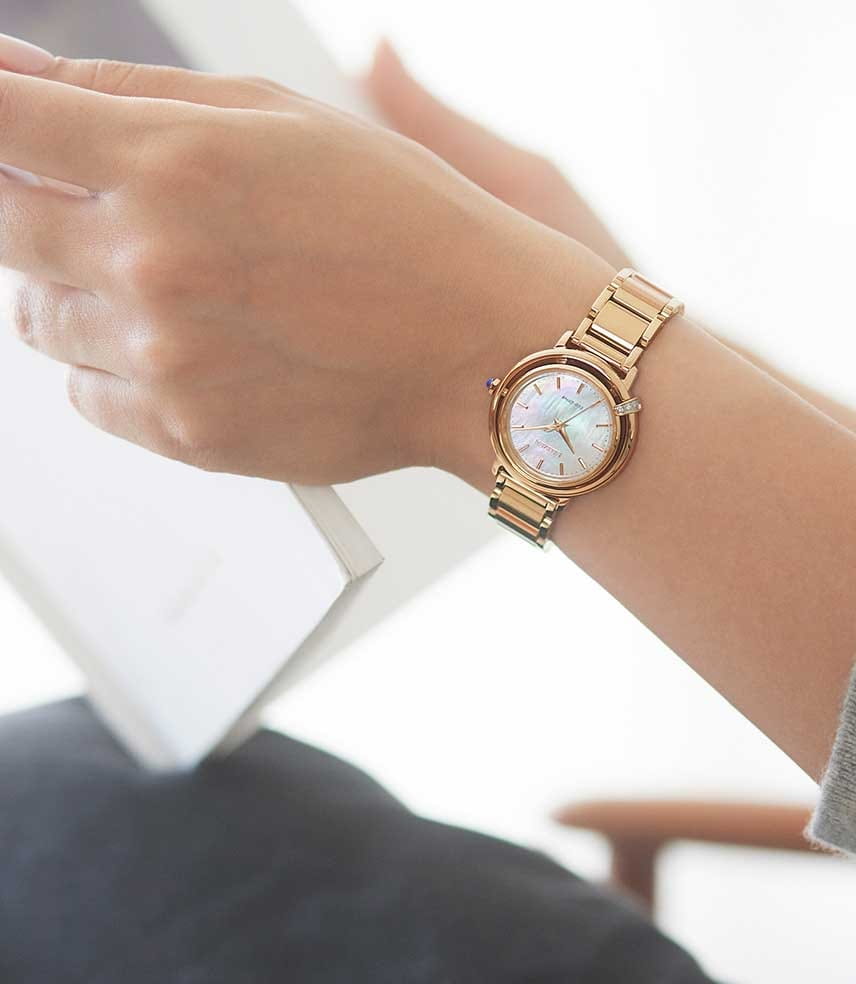 Часы Citizen EM1093-61D – это элегантная модель, созданная в Японии и сочетающая в себе современные технологии и изысканный дизайн. Надежный кварцевый механизм Citizen E031 с инновационной системой Eco-Drive работает от солнечной энергии и не требует замены батарейки, обеспечивая запас хода до 180 дней. Корпус и браслет часов выполнены из нержавеющей стали с золотым IP-покрытиемIP-покрытиеМетод ионного напыления. Демонстрирует повышенную устойчивость к истиранию, окислению и химическим веществам. Под воздействием высокого давления и температуры около 1500°C молекулы металла надёжно соединяются с частицами корпуса часов. и украшен тремя кристаллами, что придает аксессуару особое сияние. Перламутровый голубой циферблат с лаконичными метками защищен выпуклым сапфировым стекломСапфировое стеклоПрочный и надёжный материал из кристалла сапфира синтетического происхождения, характеризующийся особой твёрдостью и устойчивостью к царапинам и повреждениям., устойчивым к царапинам. Заводная головка декорирована камнем в форме кабошона, а задняя крышка закреплена на четырех винтах. Стальной браслет оснащен застежкой «бабочка»Застёжка "бабочка"Такой вид застёжки дополняется предохранителями, помогающими избежать случайного раскрытия браслета. Обладают изящным исполнением. и системой быстрой замены, что позволяет легко менять стиль часов в зависимости от вашего настроения. В комплекте также идет сменный белый ремешок с такой же застежкой. Водозащита 50WR позволяет не беспокоиться о случайном контакте с водой. Компактные размеры корпуса (диаметр 31,2 мм, толщина 7,8 мм, вес 71 г) обеспечивают комфортное ношение каждый день. Эти часы станут великолепным дополнением к любому образу и подчеркнут вашу индивидуальность.