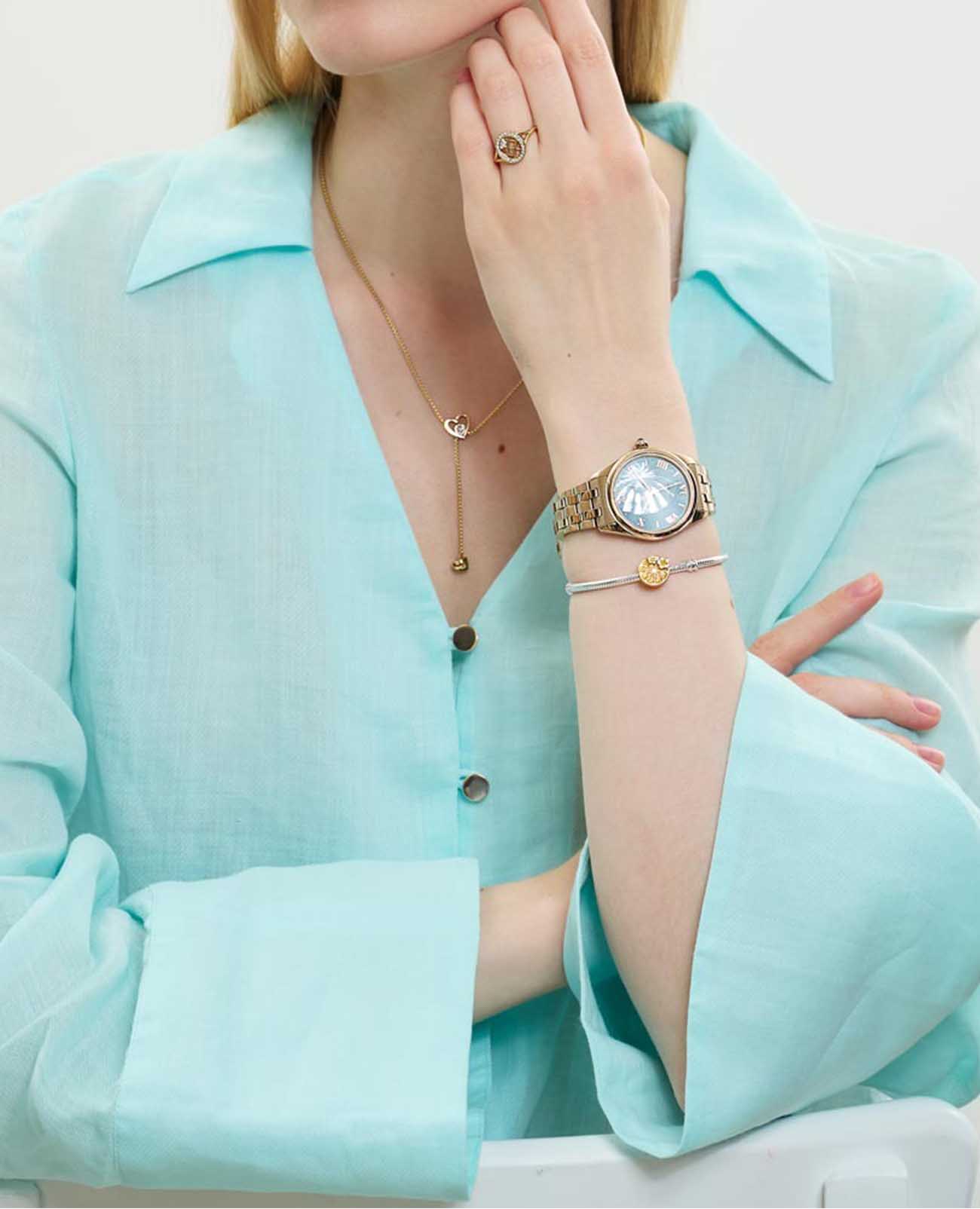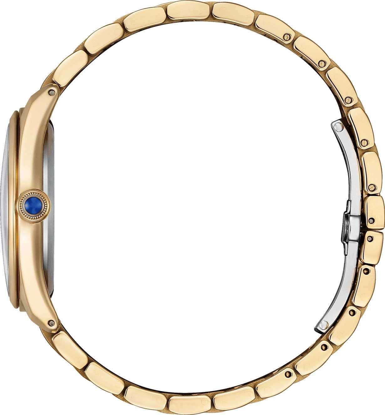 Часы Citizen EM1143-81X созданы для тех, кто ценит изящество и передовые технологии. Модель выполнена в Японии и оснащена кварцевым механизмом Citizen E031 с инновационной системой Eco-Drive, которая обеспечивает питание от солнечной энергии и не требует замены батарейки. Запаса энергии хватает на 180 дней, а функция индикации заряда и система предотвращения перезарядки гарантируют стабильную работу. Корпус диаметром 33 мм и толщиной 8,7 мм изготовлен из высококачественной стали с золотистым IP-покрытиемIP-покрытиеМетод ионного напыления. Демонстрирует повышенную устойчивость к истиранию, окислению и химическим веществам. Под воздействием высокого давления и температуры около 1500°C молекулы металла надёжно соединяются с частицами корпуса часов., а белый циферблат с римскими цифрами и штрихами придает часам утончённый вид. Сапфировое стеклоСапфировое стеклоПрочный и надёжный материал из кристалла сапфира синтетического происхождения, характеризующийся особой твёрдостью и устойчивостью к царапинам и повреждениям. надежно защищает циферблат от царапин и повреждений. Заводная головка украшена камнем в форме кабошона, что добавляет особого шарма аксессуару. Стальной браслет с золотистым IP-покрытиемIP-покрытиеМетод ионного напыления. Демонстрирует повышенную устойчивость к истиранию, окислению и химическим веществам. Под воздействием высокого давления и температуры около 1500°C молекулы металла надёжно соединяются с частицами корпуса часов. с удобной застежкой «бабочка»Застёжка "бабочка"Такой вид застёжки дополняется предохранителями, помогающими избежать случайного раскрытия браслета. Обладают изящным исполнением. обеспечивает комфортную посадку на запястье. Водозащита уровня 50WR позволяет использовать часы в повседневной жизни, не опасаясь попадания влаги. Эта модель станет стильным и надежным дополнением к вашему образу.