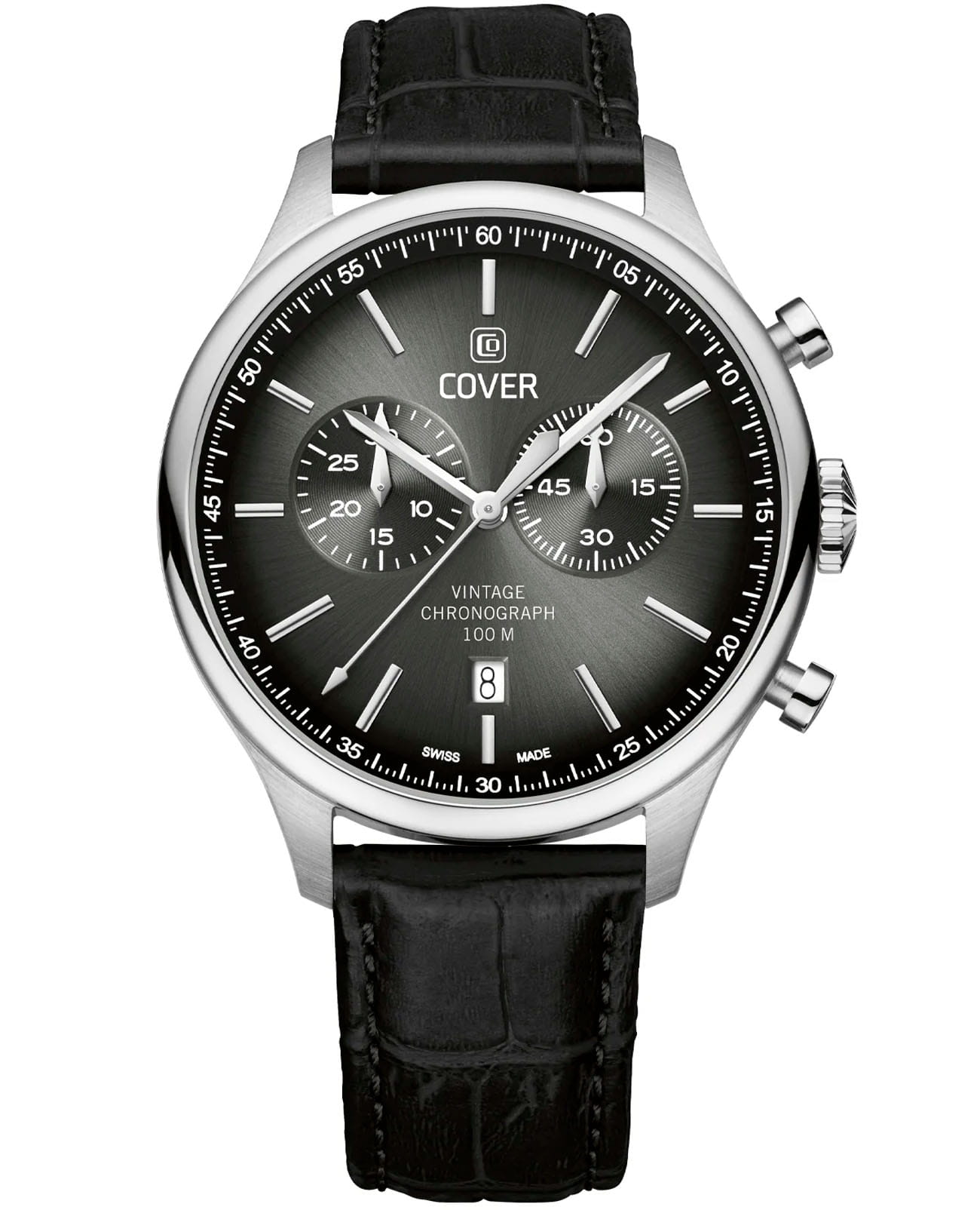 Мужские наручные часы-хронографХронографФункция позволяет измерять отрезки времени с особой точностью: часы, минуты, секунды. Верным признаком хронографа является наличие на циферблате 3 дополнительных окошек-счётчиков. Cover CO192.03 из коллекции Chapman Classic Chronograph сочетают в себе классический дизайн и надежность современных технологий. Модель обладает круглым корпусом диаметром 42,5 мм, изготовленным из нержавеющей стали, что обеспечивает высокую устойчивость к внешним воздействиям. Браслет выполнен из натуральной кожи на стандартной застежке, которая позволяет легко регулировать размер браслета под любой размер запястья и гарантирует комфортное ношение. Черный циферблат оснащен функцией отображения времени, секундомером и окном даты, делая модель практичной для повседневного использования. Для защиты используется минеральное стеклоМинеральное стеклоМинеральное стекло представляет собой искусственно выращенный минерал кварца. Такое стекло отличается особой устойчивостью к повреждениям и царапинам. Уступает по некоторым качествам сапфировому стеклу., обеспечивающее прочную защиту от царапин. Часы работают на кварцевом механизме Ronda 5021.D, что гарантирует точное время без необходимости подзаводки. Водонепроницаемость часов достигает 5 атмосфер (50 метров), что позволяет использовать их в условиях легкого контакта с водой, однако не рекомендуется для плавания или водных видов спорта.