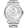 Мужские наручные часы Cover CO200.02 из коллекции Marville сочетают в себе классический дизайн и высокую точность швейцарского производства. Модель обладает круглым корпусом диаметром 39 мм, изготовленным из нержавеющей стали, что придает изделию благородный внешний вид. Серебристый циферблат с апертурой даты на «3 часах» оснащен стрелками для часов, минут и секунд. Для защиты используется сапфировое стеклоСапфировое стеклоПрочный и надёжный материал из кристалла сапфира синтетического происхождения, характеризующийся особой твёрдостью и устойчивостью к царапинам и повреждениям. с антибликовым покрытиемАнтибликовое покрытиеСлой оксида металла в 0,13-0,3 микрон, благодаря которому стекло часов не бликует и не отражает свет. Антибликовое покрытие уменьшает отражение света в 10 раз, обеспечивая отличную читаемость показателей циферблата., обеспечивающее прочную защиту от царапин и превосходную читаемость времени даже при ярком свете. Часы работают на высокоточном кварцевом механизме ETA, гарантирующем исключительную точность хода с погрешностью около 20 секунд в месяц. Браслет выполнен из нержавеющей стали и оснащен раскладной застежкойРаскладная застёжкаТакой тип застёжки используется только на браслетах из металла. Она никогда не раскрывается полностью, происходит разделение на 2 и более частей. Раскладывающая застёжка снизит вероятность потери часов к минимуму., обеспечивающей комфортное ношение и безопасность. Водонепроницаемость достигает 10 атмосфер (100 метров), что позволяет использовать их во время плавания и других водных видов спорта, однако не рекомендуется для глубоководного дайвинга. Эти швейцарские часы станут идеальным дополнением как классического, так и современного образа мужчины, ценящего качество и стиль.