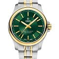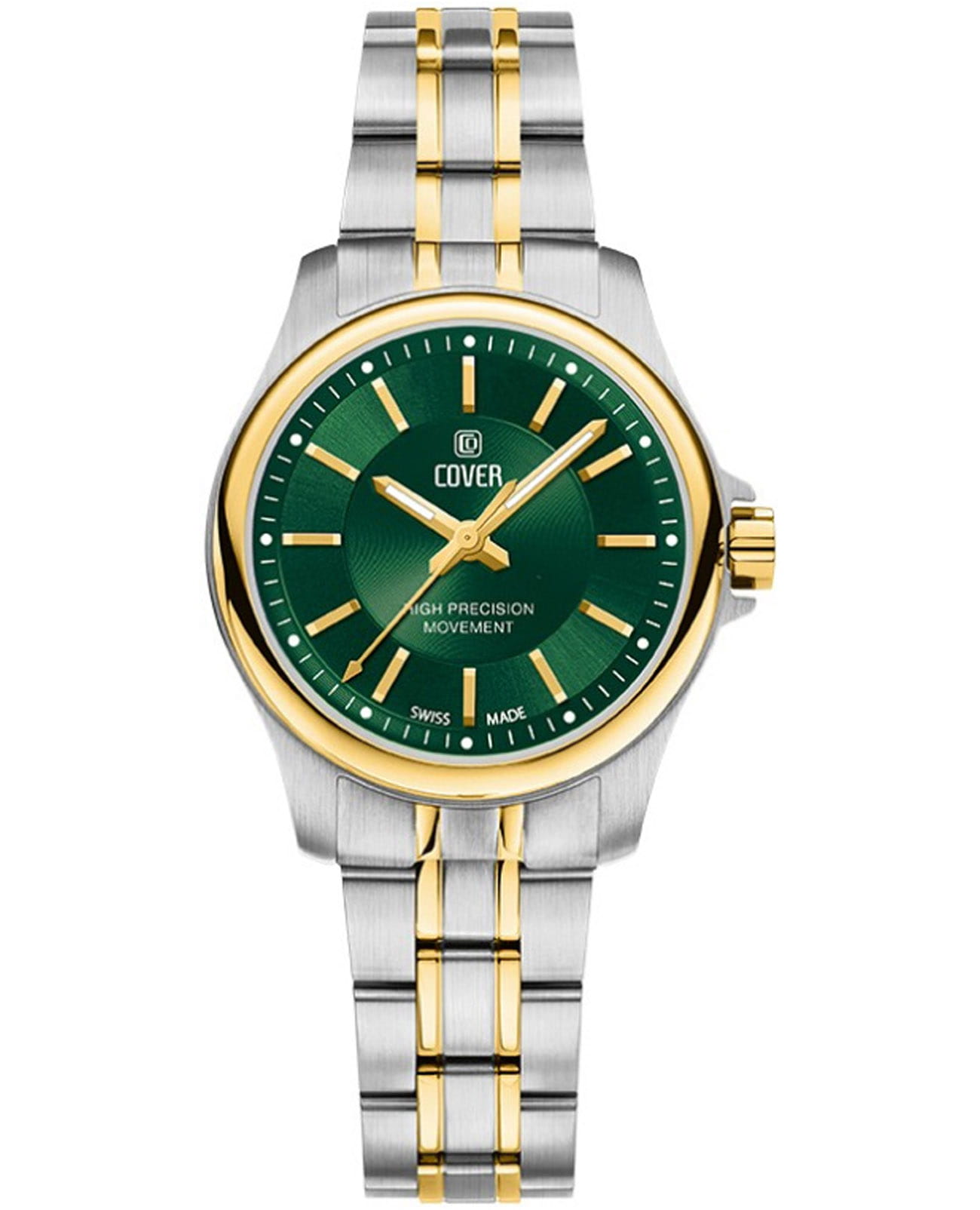 Женские наручные часы Cover CO201.32 из коллекции Marville сочетают в себе классический дизайн и высокую точность швейцарского производства. Модель обладает круглым корпусом диаметром 28 мм, изготовленным из нержавеющей стали, что придает изделию благородный внешний вид. Зеленый циферблат оснащен стрелками с люминесцентным покрытиемЛюминесцентное покрытиеПозволяет считывать показания времени в темноте. Производители наносят на стрелки, часовые индексы, безель или поверхность циферблата светонакопительный состав, дающий холодное свечение.. Для защиты используется сапфировое стеклоСапфировое стеклоПрочный и надёжный материал из кристалла сапфира синтетического происхождения, характеризующийся особой твёрдостью и устойчивостью к царапинам и повреждениям. с антибликовым покрытиемАнтибликовое покрытиеСлой оксида металла в 0,13-0,3 микрон, благодаря которому стекло часов не бликует и не отражает свет. Антибликовое покрытие уменьшает отражение света в 10 раз, обеспечивая отличную читаемость показателей циферблата., обеспечивающее прочную защиту от царапин и превосходную читаемость времени даже при ярком свете. БезельБезельВнешний ободок, закрепляющий стекло. В спортивных часах так называется поворотное кольцо с делениями на циферблате, выполняет роль таймера – замеряет отрезки времени на шкале. Неподвижный безель – элемент декора. Однонаправленно вращающийся безель на дайверских часах позволяет фиксировать моменты погружения и выныривания на поверхность. с золотистым PVD-покрытиемPVDУльтратонкое покрытие наносится в технике вакуумного напыления, сочетает в себе нитрид титана особой прочности со слоем золота или оксида хрома. Несёт в себе декоративную или защитную функцию.. Часы работают на высокоточном кварцевом механизме ETA, гарантирующем исключительную точность хода с погрешностью около 20 секунд в месяц. Браслет выполнен из нержавеющей стали с частичным PVD-покрытиемPVDУльтратонкое покрытие наносится в технике вакуумного напыления, сочетает в себе нитрид титана особой прочности со слоем золота или оксида хрома. Несёт в себе декоративную или защитную функцию. и оснащен раскладной застежкойРаскладная застёжкаТакой тип застёжки используется только на браслетах из металла. Она никогда не раскрывается полностью, происходит разделение на 2 и более частей. Раскладывающая застёжка снизит вероятность потери часов к минимуму., обеспечивающей комфортное ношение и безопасность. Водонепроницаемость достигает 10 атмосфер (100 метров), что позволяет использовать их во время плавания и других водных видов спорта, однако не рекомендуется для глубоководного дайвинга. Эти швейцарские часы станут идеальным дополнением как классического, так и современного образа.