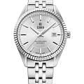 Наручные часы Cover CO208.02 из коллекции Alston — это воплощение мужской элегантности и швейцарского мастерства. Модель привлекает внимание своим безупречным дизайном и высокотехнологичным исполнением, что делает ее идеальным выбором для тех, кто ценит классику с современным акцентом. В основе работы часов лежит надежный кварцевый механизм ETA, известный своей исключительной точностью и долговечностью. Этот швейцарский калибр гарантирует стабильность хода и минимальную погрешность, а маркировка «Swiss Made» подтверждает соответствие высочайшим стандартам качества. Циферблат серебристого цвета с текстурированным узором и контрастными штрихами, защищен минеральным стекломМинеральное стеклоМинеральное стекло представляет собой искусственно выращенный минерал кварца. Такое стекло отличается особой устойчивостью к повреждениям и царапинам. Уступает по некоторым качествам сапфировому стеклу. с сапфировым напылением. Браслет из нержавеющей стали серебристого цвета, на раскладной застёжкеРаскладная застёжкаТакой тип застёжки используется только на браслетах из металла. Она никогда не раскрывается полностью, происходит разделение на 2 и более частей. Раскладывающая застёжка снизит вероятность потери часов к минимуму.. Часы Cover CO208.02 – это сочетание традиций швейцарского качества и современности.