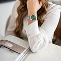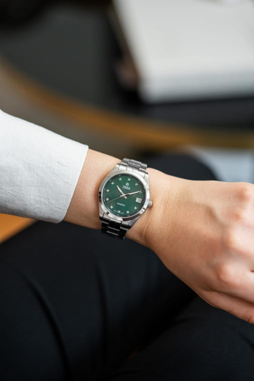 Представляем женские швейцарские часы Cover из коллекции Andara Diamond, модель CO210.03 — воплощение элегантности и роскоши. Эта уникальная модель украшена синтетическими бриллиантами, которые гармонично сочетаются с зеленым перламутровым циферблатом, создавая ослепительную игру света на запястье. Стальной корпус диаметром 35 мм выполнен в пропорциональных размерах, что делает часы удобными для повседневного ношения. Циферблат защищен прочным сапфировым стекломСапфировое стеклоПрочный и надёжный материал из кристалла сапфира синтетического происхождения, характеризующийся особой твёрдостью и устойчивостью к царапинам и повреждениям., устойчивым к царапинам и обеспечивающим идеальную читаемость времени даже при ярком свете. Модель оснащена водонепроницаемостью до 10 АТМ, что позволяет использовать часы во время плавания или занятий водными видами спорта. Однако важно помнить, что во время погружения рекомендуется не нажимать кнопки и не пользоваться заводной головкой. Стальной браслет на застёжке-бабочке с кнопкамиЗастёжка "бабочка"Такой вид застёжки дополняется предохранителями, помогающими избежать случайного раскрытия браслета. Обладают изящным исполнением. .