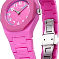 Часы D1 Milano Nanochrome Young Flamingo NCBJ03 –это стильные и молодежные наручные часы, идеально подходящие для подростков. Модель имеет компактный корпус диаметром 32 мм и толщиной 8,8 мм, изготовленный из поликарбоната с мягким на ощупь покрытием. Часы оснащены матовым розовым циферблатом с белыми и голубыми деталями, что придает им яркий и современный вид. Минеральное стекло с антибликовым покрытием защищает циферблат от царапин. Часы работают от кварцевого механизма Seiko VJ20, обеспечивающего точный ход. Розовый поликарбонатный ремешок с потайной раскладной застёжкойРаскладная застёжкаТакой тип застёжки используется только на браслетах из металла. Она никогда не раскрывается полностью, происходит разделение на 2 и более частей. Раскладывающая застёжка снизит вероятность потери часов к минимуму. удобно облегает запястье. Водонепроницаемость 5 ATM позволяет носить часы при плавании. Легкий вес всего 34 грамма делает их комфортными для повседневного использования. Часы D1 Milano Nanochrome NCBJ01 сочетают в себе итальянский дизайн, качество и доступность, что делает их отличным выбором для молодых людей, желающих выразить свой стиль.