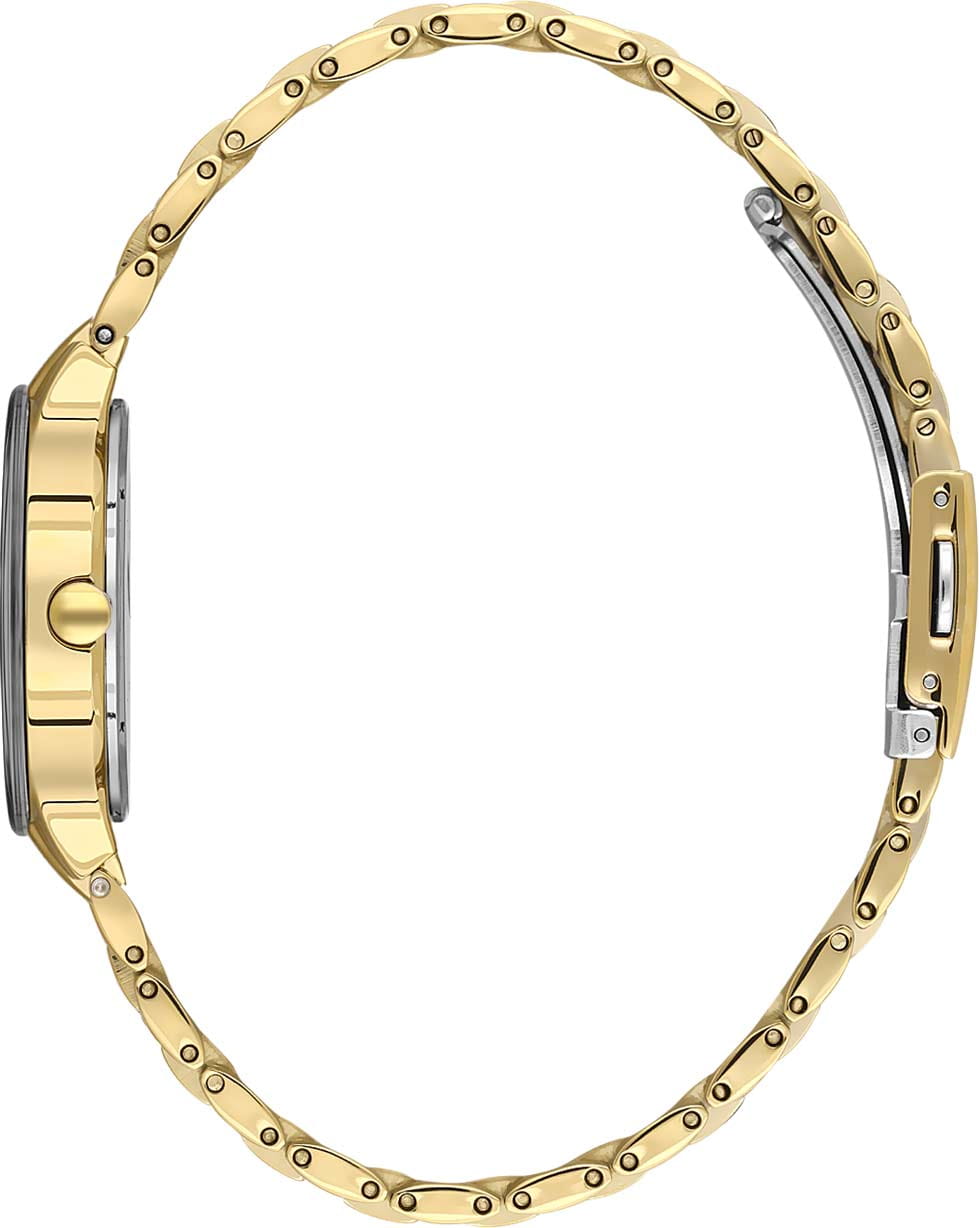 Женские кварцевые часы Daniel Klein — это надёжный и стильный аксессуар. Корпус диаметром 30,3 мм выполнен из металла с IP-покрытиемIP-покрытиеМетод ионного напыления. Демонстрирует повышенную устойчивость к истиранию, окислению и химическим веществам. Под воздействием высокого давления и температуры около 1500°C молекулы металла надёжно соединяются с частицами корпуса часов.. Циферблат чёрного цвета оформлен штрихами с кристаллами и стрелками. Циферблат защищён минеральным стекломМинеральное стеклоМинеральное стекло представляет собой искусственно выращенный минерал кварца. Такое стекло отличается особой устойчивостью к повреждениям и царапинам. Уступает по некоторым качествам сапфировому стеклу.. Часы оснащены стальным браслетом с IP-покрытиемIP-покрытиеМетод ионного напыления. Демонстрирует повышенную устойчивость к истиранию, окислению и химическим веществам. Под воздействием высокого давления и температуры около 1500°C молекулы металла надёжно соединяются с частицами корпуса часов. на раскладной застёжкеРаскладная застёжкаТакой тип застёжки используется только на браслетах из металла. Она никогда не раскрывается полностью, происходит разделение на 2 и более частей. Раскладывающая застёжка снизит вероятность потери часов к минимуму.. Водонепроницаемость 30 м позволяет использовать часы в повседневных условиях. Идеальный выбор для тех, кто ценит турецкое качество и элегантный дизайн.