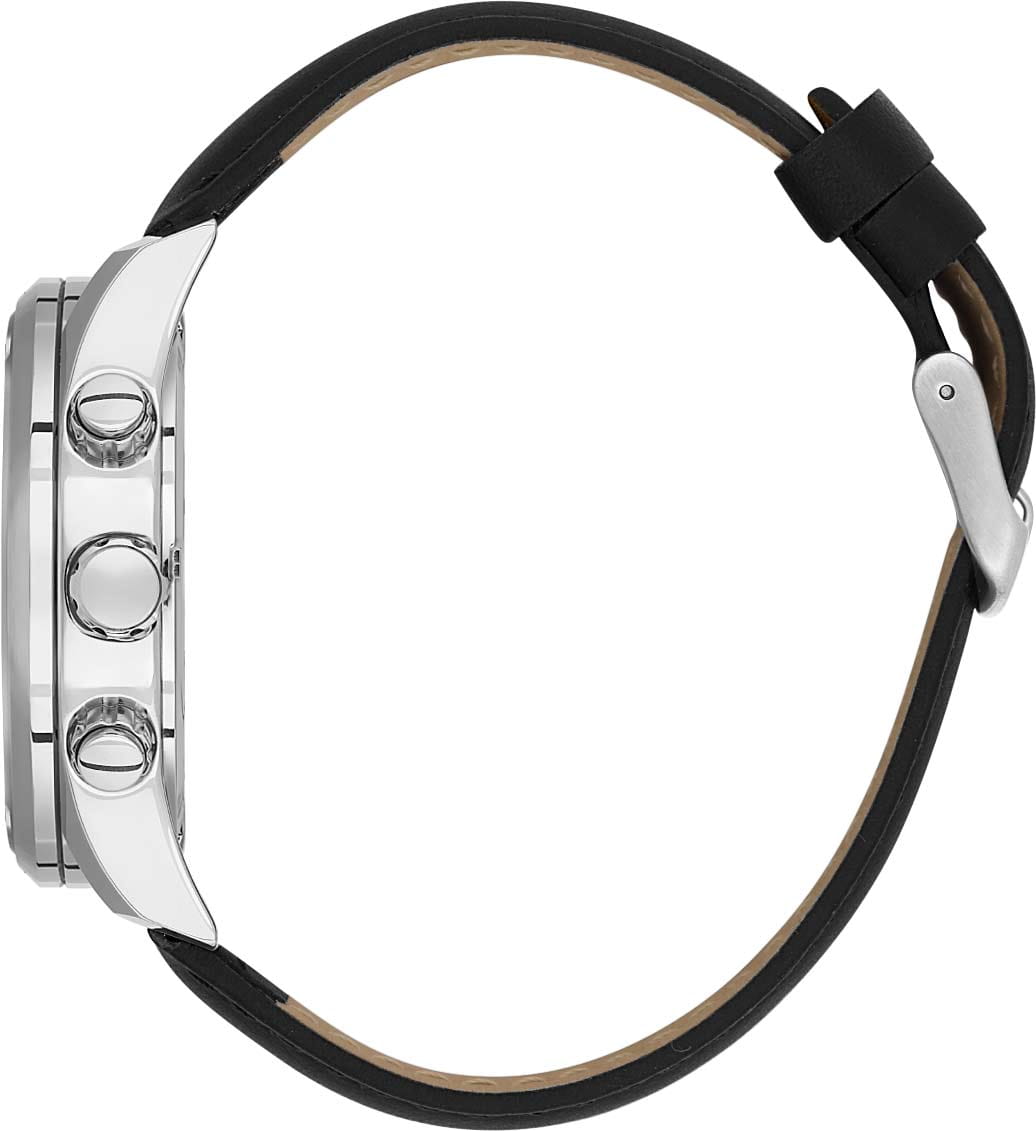 Мужские кварцевые часы-хронограф Daniel Klein — это фирменный аксессуар для ценящих своё время. Корпус диаметром 43 мм выполнен из нержавеющей стали. Циферблат чёрного цвета оформлен штрихами, стрелками и тремя субциферблатами хронографа. Присутствуют индикаторы 24-часового формата времени. Окошко даты расположено между 4 и 5 часами. Стрелки и метки с люминесцентным покрытиемЛюминесцентное покрытиеПозволяет считывать показания времени в темноте. Производители наносят на стрелки, часовые индексы, безель или поверхность циферблата светонакопительный состав, дающий холодное свечение., обеспечивающим хорошую читаемость в темноте. Циферблат защищён минеральным стекломМинеральное стеклоМинеральное стекло представляет собой искусственно выращенный минерал кварца. Такое стекло отличается особой устойчивостью к повреждениям и царапинам. Уступает по некоторым качествам сапфировому стеклу.. Часы оснащены кожаным ремешком на классической пряжке. Водонепроницаемость 50 м позволяет использовать часы в повседневных условиях. Идеальный выбор для тех, кто ценит турецкое качество и универсальный дизайн.